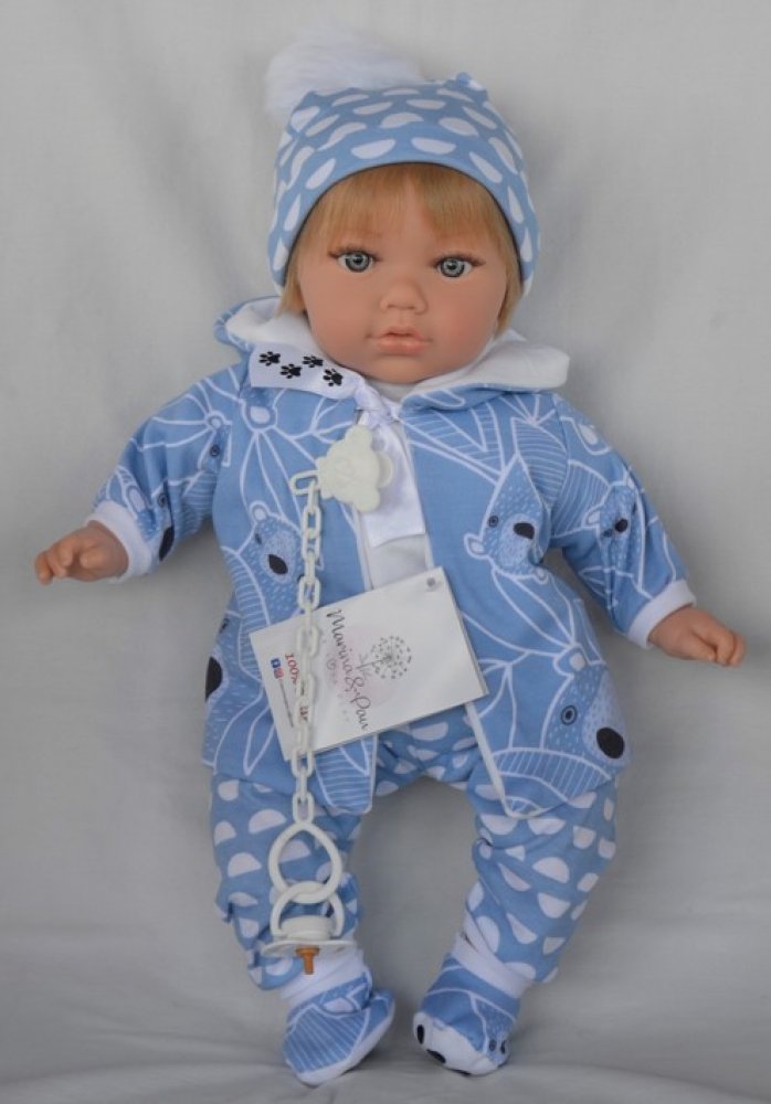 Marina & Pau Realistická Teo v modré bundě Teo 45 cm v sáčku