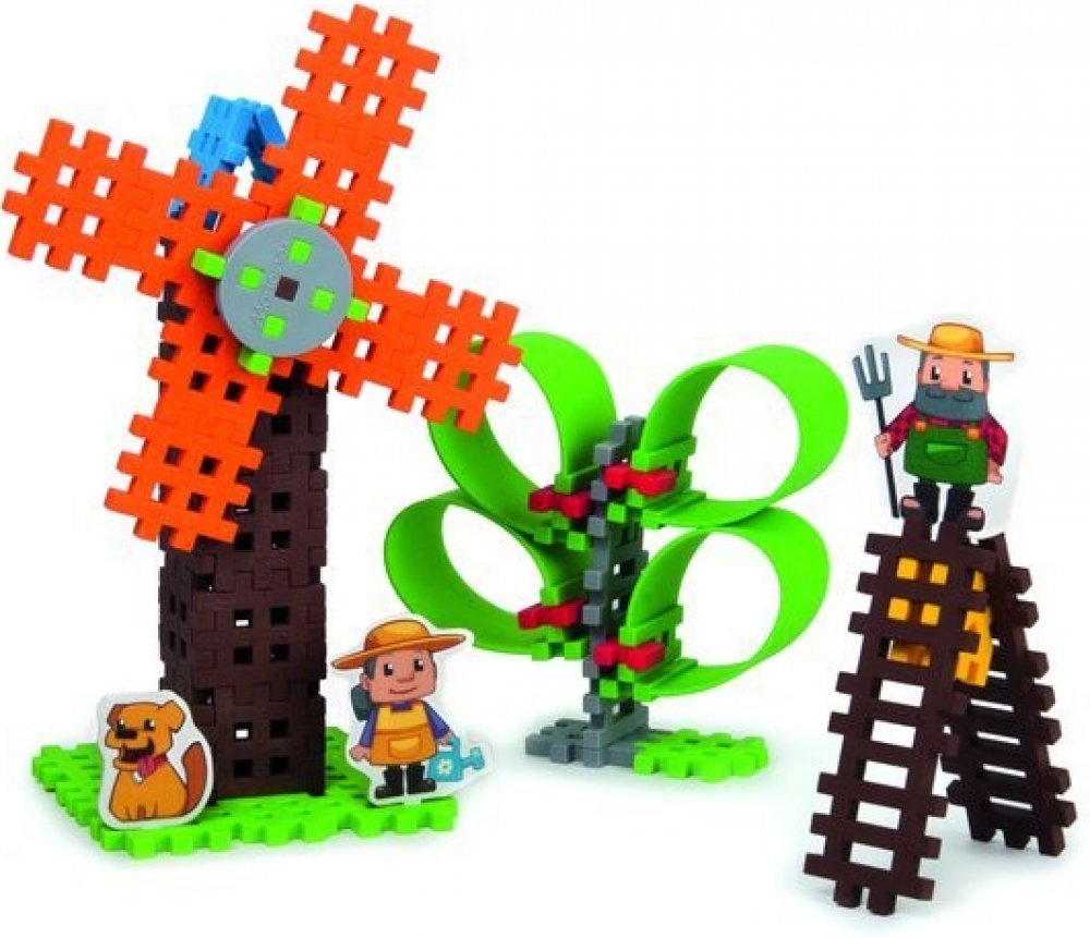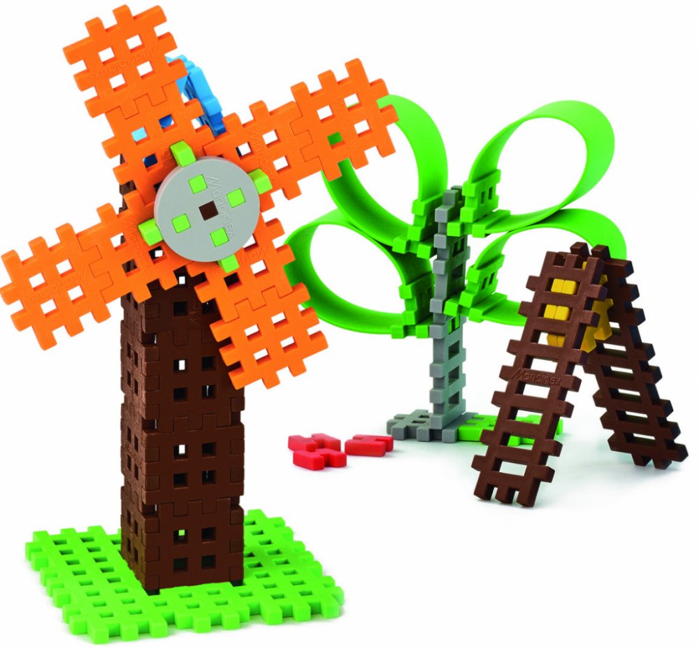 Sada 57 mřížkovaných dílků v krabičce, ze kterých si můžete postavit mlýn, strom i žebřík.