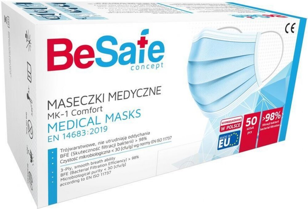 kvalitní certifikovaná třívrstvá ústní rouška. Ochranná jednorázová obličejová rouška EU ze 3 vrstev netkané textilie. Certifikovaný zdravotnický prostředek 1. třídy, typ II, účinnost více než 98 %, v souladu s normou EN 14683. Baleno po 10 rouškách v krabičce. Pružné ušní smyčky, nosní pásek pro přizpůsobení tvaru. Vyrobeno v EU (Polsko). Cena 4,50 Kč za 1 ks, 1...