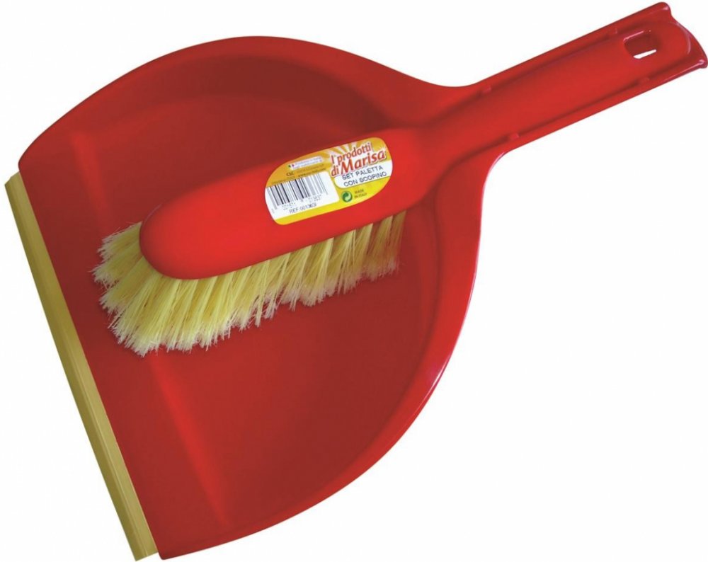 Marisa - set - smetáček s lopatkou a gumovou lištou. Smetáček s lopatkou se dají prakticky zaklapnout do sebe. Mají úchyt k zavěšení. Roztřepené speciální štětiny a gumová lišta zajišťují dokonalé nametení jemného prachu, nečistot a chlupů. Tento set usnadňuje úklid domácnosti. Technické parametry: Materiál: 100% PVC Barva: červená - žlutá