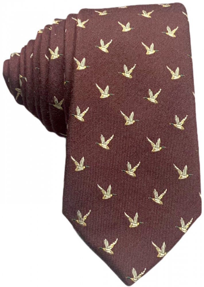 Design: Kachny Barva: Vínová Délka kravaty: 150 cm Šířka kravaty: max. 7 cm Materiál: 50% Vlna + 50% Polyester Popis: Vínová stylová pánská kravata od značky Marks Spencer plná odlétajících a přilétajících kachen.