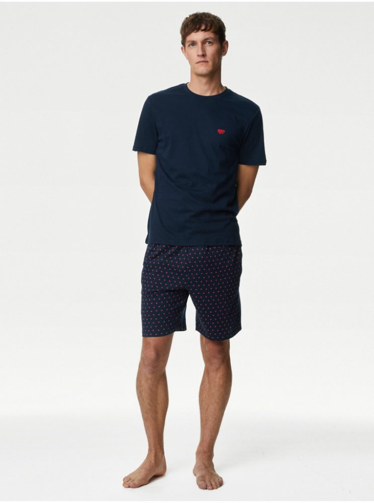 Marks & Spencer srdíčka pánské pyžamo krátké námořnická modrá