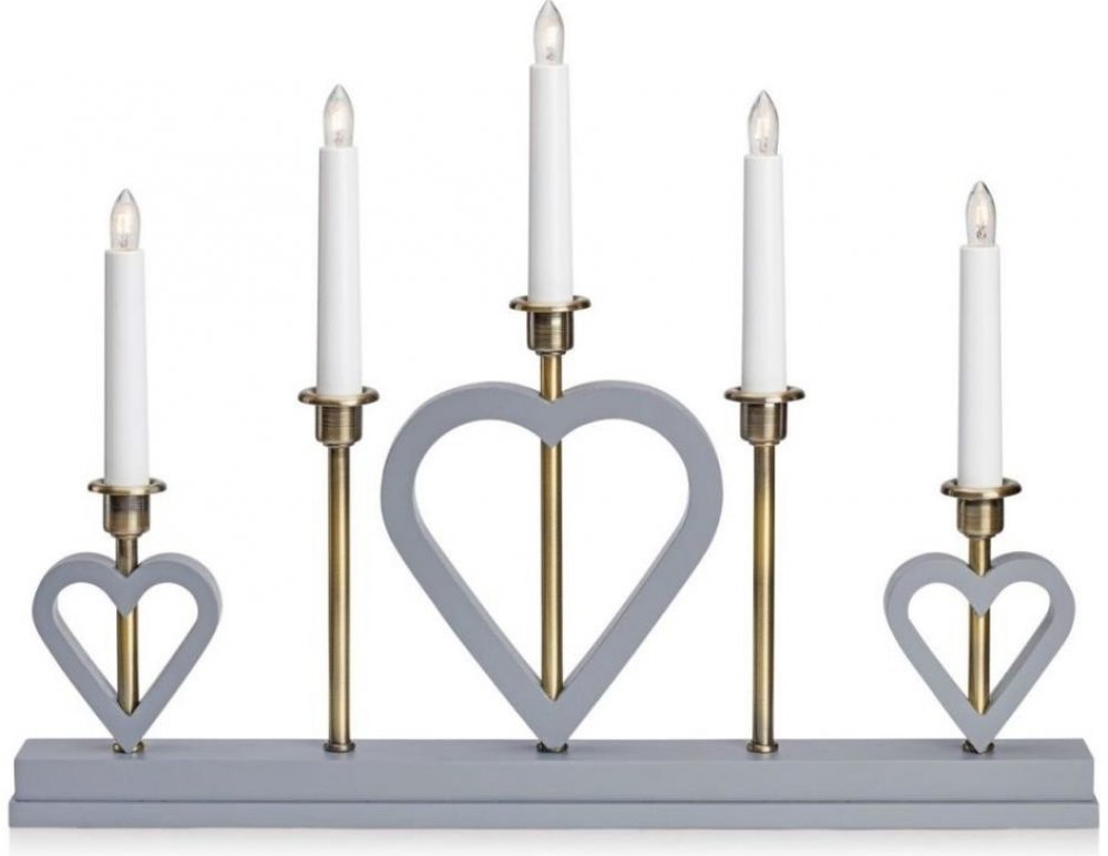 Melissa šedý svícen – MarkslöjdDesignový svícen pro moderní i tradiční interiérMelissa šedý svícen od renomované značky Markslöjd je výjimečným doplňkem, který v sobě spojuje precizní švédské řemeslo a nadčasový design. Základem svícnu je kvalitní borovicové dřevo v elegantní šedé povrchové úpravě, které decentně kontrastuje s detaily v barvě antické mosazi. Srdcovité motivy vytváří harmonickou a vřelou atmosféru, ideální nejen pro vánoční období, ale i pro celoroční zútulnění vašeho domova.Technické parametry a funkce Počet světelných zdrojů: 5 (žárovky E10 jsou součástí balení, teplá bílá barva světla) Maximální příkon: 3W na jednu žárovku (doporučeno používat LED – úsporné a bezpečné řešení) Materiál: Borovicové dřevo, kov (antická mosaz) Barva: Šedá, detaily v barvě antické mosazi Rozměry: Šířka 47 cm, výška 36 cm, hloubka 4,6 cm Hmotnost: 0,95 kg Délka kabelu: 200 cm, bílý kabel s klasickou zástrčkou do zásuvky Ovládání: Vypínač na kabelu, typ On/Off Stupeň krytí: IP20 – vhodné pro použití v interiéru Bezpečnostní třída: II (dvojitá izolace) Rodina produktů: MELISSADoporučení architektaMelissa svícen doporučujeme umístit na okenní parapet, komodu nebo slavnostní stůl, kde vynikne jeho elegantní linie a jemné světlo navodí příjemnou atmosféru. Vzhledem k decentní barevnosti a kvalitnímu provedení je vhodný do moderních i klasických interiérů. Svícen je také ideální volbou pro luxusní apartmány, stylové rezidence a reprezentativní prostory.Záruky a certifikace Záruka: 3 roky Certifikace: CEProč zvolit Melissa šedý svícen od Markslöjd? Precizní skandinávský design, který nevyjde z módy Kvalitní materiály a dlouhá životnost Bezpečný provoz díky dvojité izolaci a certifikaci CE Snadné použití a údržba Doporučeno interiérovými designéry pro náročné zákazníky