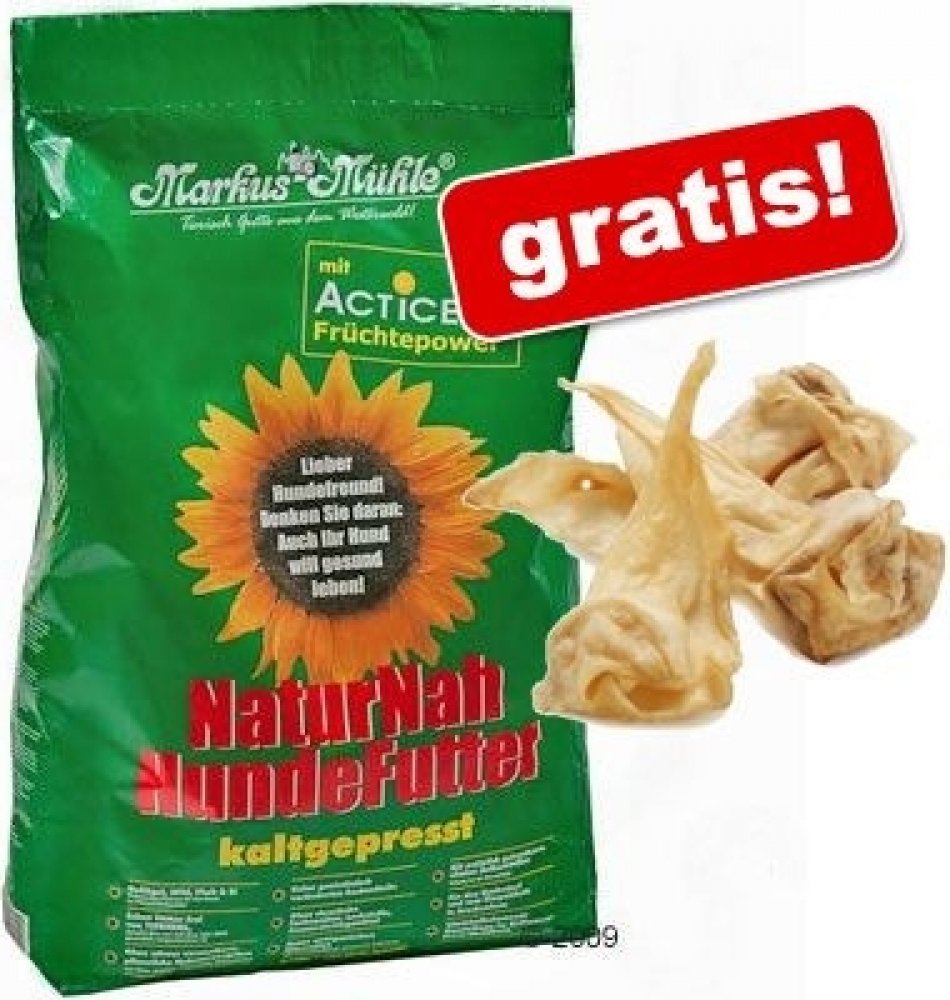 Analýzy z oblasti výživy zvířat dokládají, že Markus Mühle NaturNah je bohaté na minerály a má vyvážený obsah aminokyselin. Markus Mühle je vyráběno šetrným lisováním zastudena a díky své tvrdosti pomáhají čistit zuby, uspokojují potřebu psů kousat a podmiňují správnou produkci slin. Toto jedinečné krmivo neobsahuje konzervační látky, chemická barviva, rostlinné bílkovinné extrakty, umělé aroma ani dochucovadla, geneticky pozměněné plodiny a anorganické minerální látky.