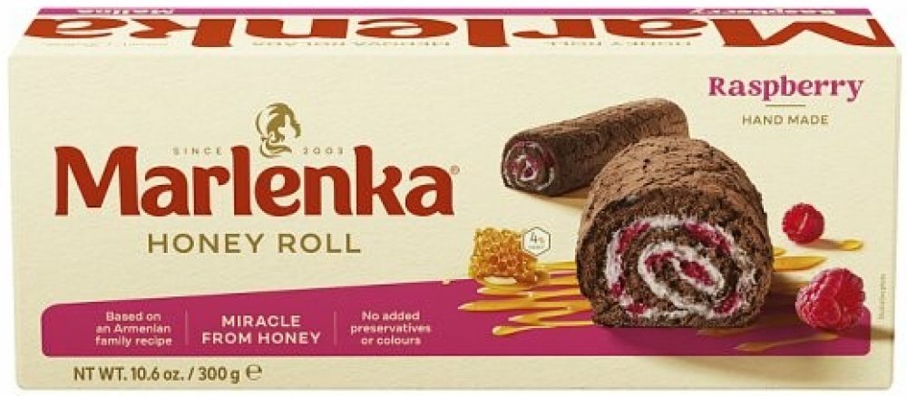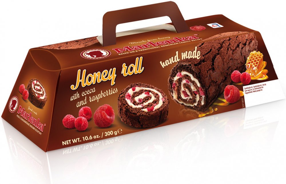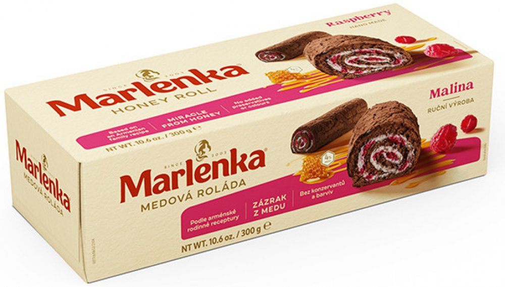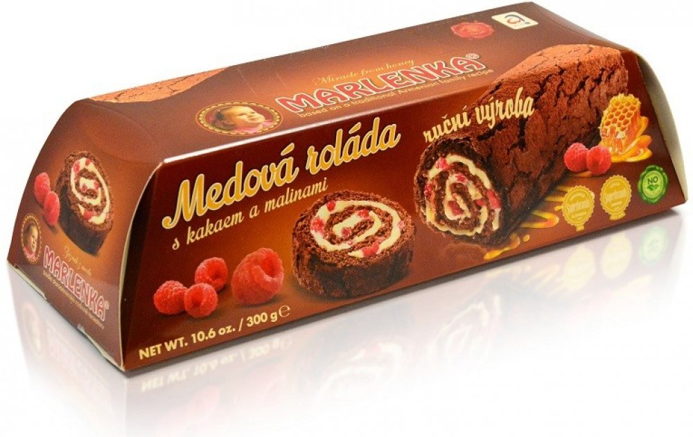 MARLENKA Medová roláda s kakaem a malinami 300 g