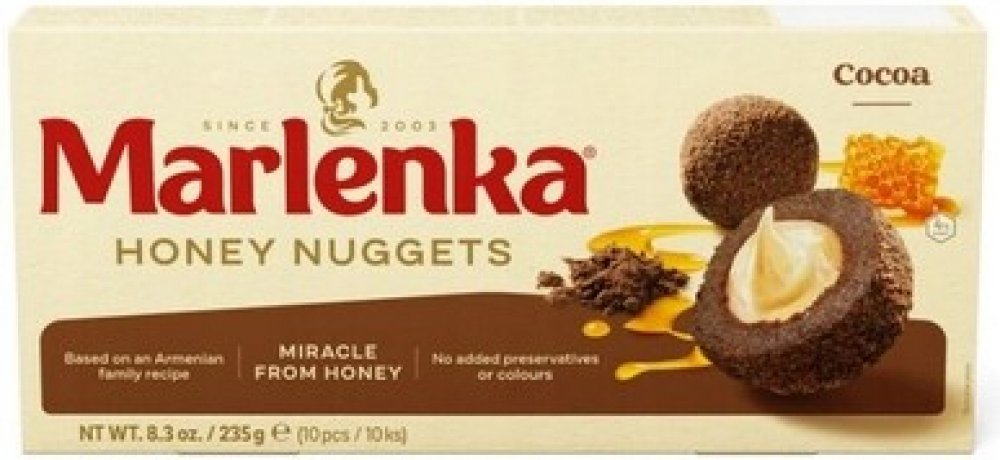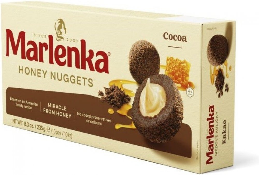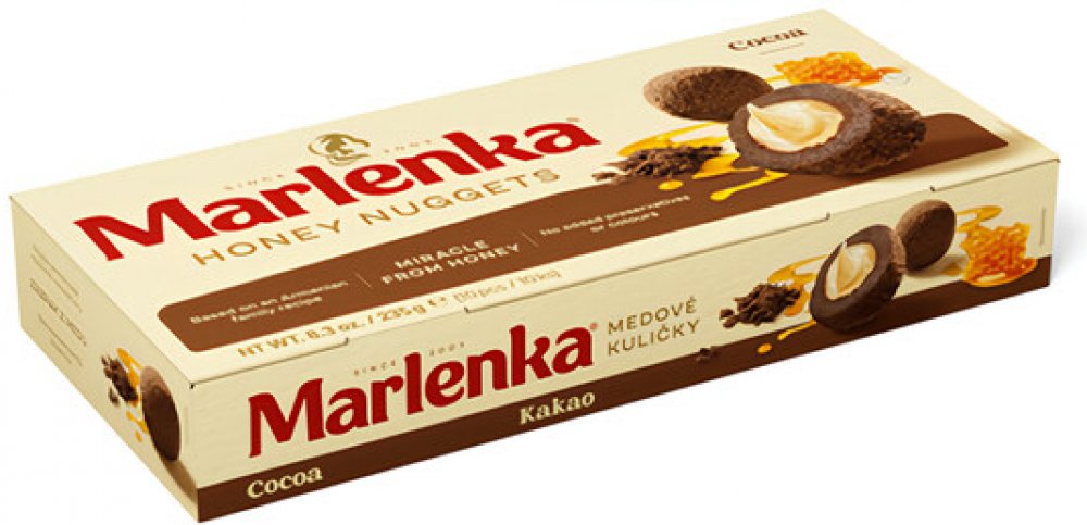 TRADIČNÍ ZNAČKA - MARLENKA - Tradiční značka s lahodnou historií: Vychutnejte si kousek autentické historie s touto ikonickou značkou s více než 60letou tradicí. Každý kousek MARLENKY obsahuje dobře střežené tajemství, které se předává z generace na generaci. RUČNÍ VÝROBA S VÁŠNÍ - Vyrobeno s vášní a láskou: Každá MARLENKA je vyrobena s pečlivostí a vášní pro výjimečnou kvalitu a autentickou chuť. Každý kus je připraven podle tradičních receptur a z pečlivě vybraných přírodních surovin. JEDINEČNÝ CHUTNÝ ZÁŽITEK - Nesrovnatelný chuťový zážitek: MARLENKA je synonymem dokonalé chuti. Ponořte se do bohaté, jemné harmonie vrstev medu, intenzivní ořechové náplně a vzdušného pečiva. Každý kousek je umělecké dílo, které se rozplývá v ústech. DLOUHÁ TRVANLIVOST - trvanlivost nejméně 6 týdnů. To znamená, že budete mít doma vždy po ruce dobroty MARLENKA pro případ nečekané návštěvy. Díky dlouhé trvanlivosti jsou také ideálním produktem pro každou kavárnu. OCENĚNO PO CELÉM SVĚTĚ - Oceňováno po celém světě: MARLENKA si získala srdce gurmánů po celém světě. Je to nejen jedinečný zážitek pro vaše chuťové pohárky, ale také ideální dárek pro vaše blízké. Vyzkoušejte tuto světoznámou značku a zjistěte, proč je ve světě dezertů tak oblíbená.