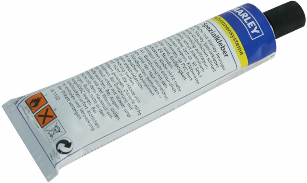Speciální lepidlo od značky Marley je určeno ke snadnému slepování hranatých okapů a okapů Duplex od značky Marley. Lepidlo obsahuje rozpouštědla, takže lépe proniká do plastu, z něhož je okap vyroben, a zaručuje optimální slepení okapu, spojovacího dílu, hrdla a koncového dílu.