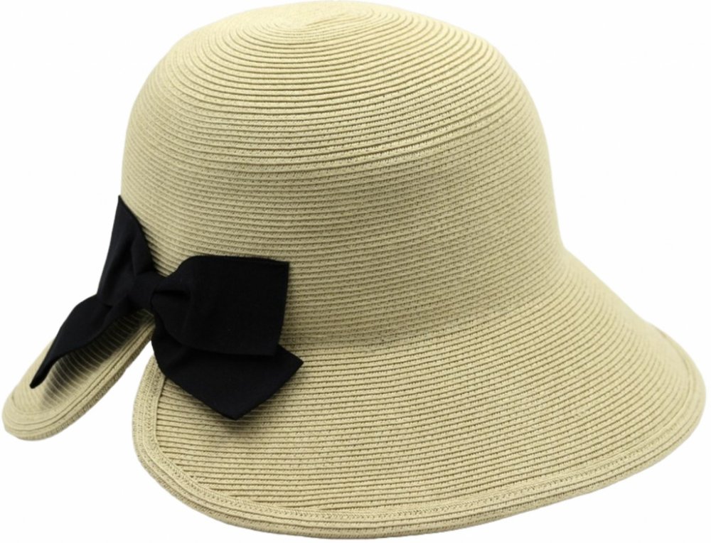 Marone Dámský letní klobouk Cloche s černou mašli béžový