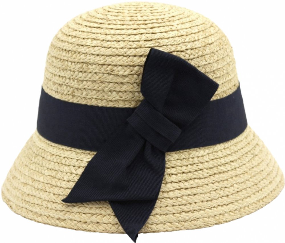Marone Dámský slaměný klobouk Cloche s modrou mašlí