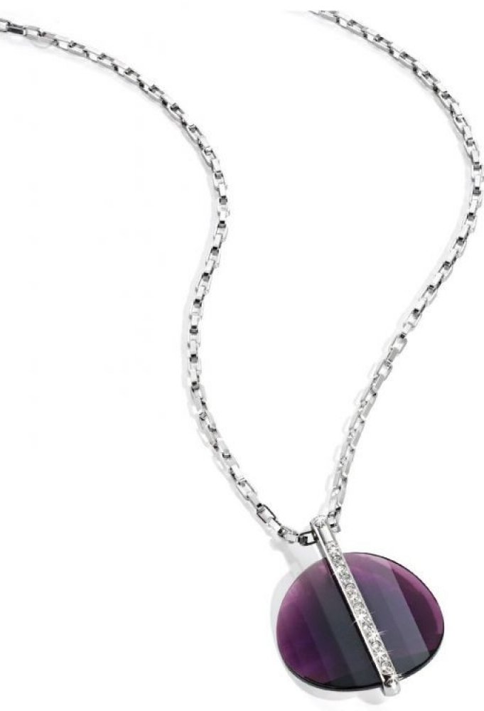 Náhrdelník značky Morellato z lesklé chirurgické oceli. Velmi elegantní přívěsek z broušeného křišťálu fialové barvy je osazen drobnými čirými zirkonky.Řetízek dodáváme v délce 45 cm. Šířka řetízku 2 mm.Přívěsek o průměru 30 mm.Osazeno jedním diamantem H/I (přírodní diamant základní ryzosti) a krystalky.Ihned k dodání - zboží je skladem.