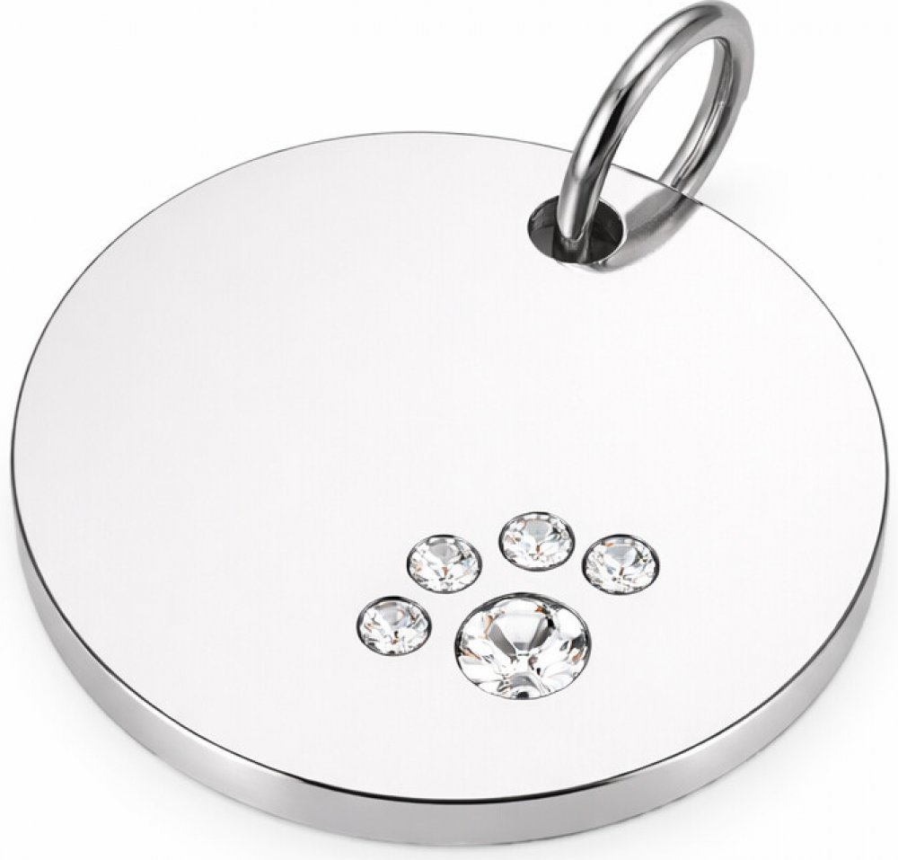 Luxusní přívěsek na obojek z chirurgické oceli - kolečko zdobené tlapkou s čirými zirkony.Materiál: chirurgická ocelPovrchová úprava: leskláRozměr: 20 mmLuxusní přívěsek na obojek ve tvaru kolečka, zdobený tlapkou z čirých zirkonů, je tím pravým doplňkem pro vašeho čtyřnohého přítele. Vyrobený z chirurgické oceli nejvyšší kvality 316L, tento stylový šperk kombinuje eleganci s funkčností a odolností.Elegantní a odolný design: Přívěsek je vyroben z lesklé chirurgické oceli, která je hypoalergenní, odolná proti korozi a neztrácí svůj lesk ani barvu. Tento materiál se používá i ve farmaceutickém průmyslu pro výrobu tělních implantátů, což zaručuje maximální bezpečnost a kvalitu, kterou oceníte nejen vy, ale i váš mazlíček.Osobitý styl a bezpečnost: Využijte možnosti individuální rytiny na známku nejčastěji jméno mazlíčka na přední straně a telefonní číslo na zadní. Kromě textu lze do přívěsku vyrýt také logo nebo obrázek dle vašeho přání. Tímto způsobem dodáte přívěsku osobní dotek a zároveň zajistíte, že v příp