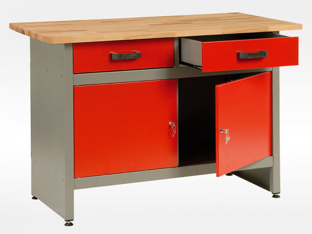 Konstrukce stolu je vyrobena z ocelového plechu o síle 1mm a opatřena kvalitním a ekologickým práškovým lakem s vynikající odolností proti otěru. Pracovní desky stolů jsou 2,5cm silné a vyrobené z lepeného bukového dřeva s dlouhou životností. Stoly lze sestavovat a kombinovat s dalšími produkty – dílenské skříně, nástěnné panely a příslušenství.