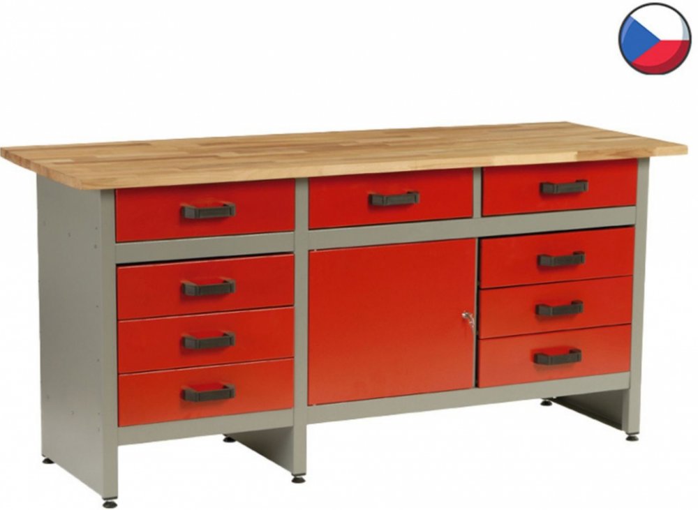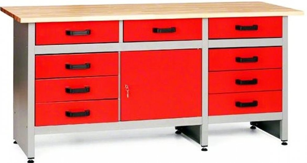 Název produktu: Dílenský stůl, 9 x zásuvka, 1 x dvířka, (dxšxv) 170x60x84 cm