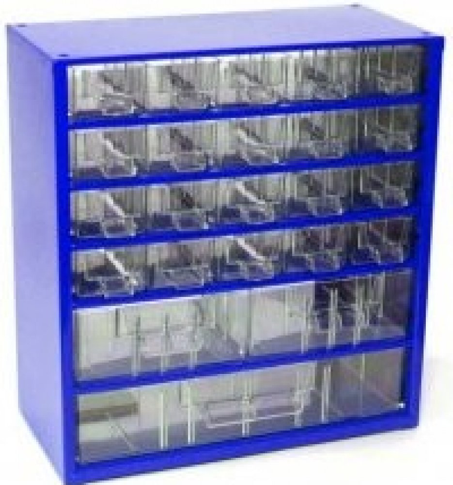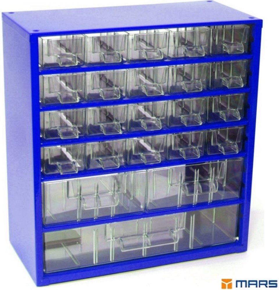 Kvalitní a odolné skříňky Mars, které nesmí chybět ani ve Vaší dílně, jsou vyrobeny z ocelového plechu a opatřeny odolným práškovým lakem. Čiré zásuvky a přepážky jsou vyrobené z trvanlivého materiálu PS(polystyrol).