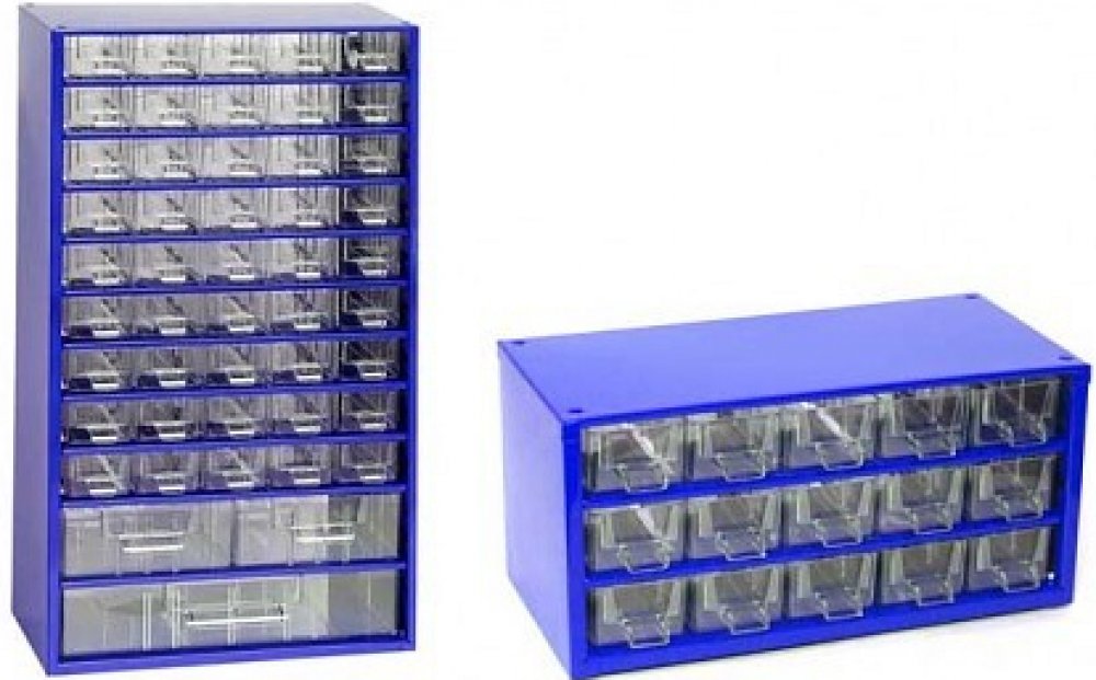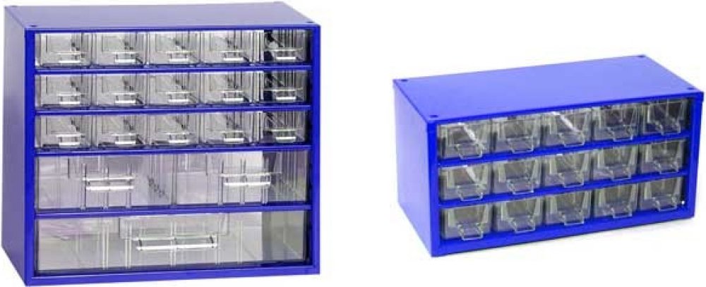 - Závěsné skříňky lze volně postavit, stohovat jednu na druhou(podstava je opatřena plastovými nožičkami), nebo zavěsitna stěnu. Skříňky jsou vyráběny v různých velikostech a variantách velikosti a uspořádání zásuvek. Skříňky lze kombinovat a tvořit z nich kompaktní celky.