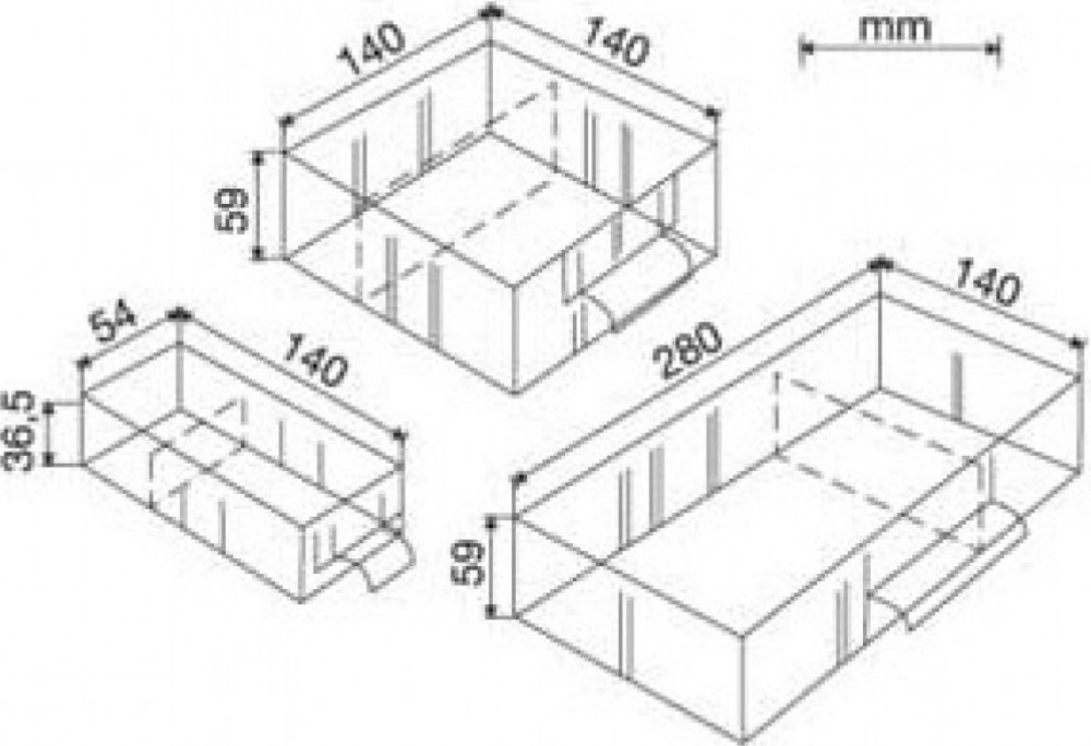- Skříňky lze buď volně postavit, stohovat jednu na druhou (podstava je opatřena čtyřmi plastovými nožičkami), nebo zavěsit na stěnu. Jsou vyráběny v různých velikostech (různé výšky, šířky i hloubky) a s různými kombinacemi plastových zásuvek. Ze skříněk lze tvořit kompaktní celky.