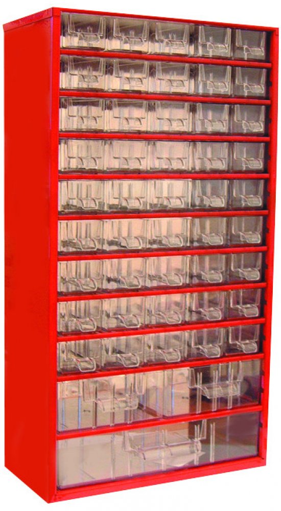 - Zásuvky je možné dodat čiré vyrobeny z polystyrolového (PS) plastu. Zásuvky jsou vyráběny v různých variantách a velikostech. Skříňky jsou vybaveny systémem, který zabraňuje vypadnuti zásuvek při prudkém vytaženi či při nakloněni skříňky. Pohodlnější chod zásuvek zajišťuji vodici lišty (zabrání vzpříčení zásuvek).