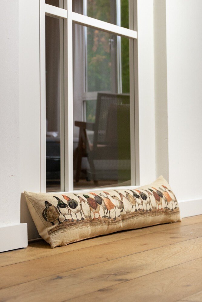 Mars & More Béžový gobelinový dlouhý polštář s kachnami Ducks 90x15x20