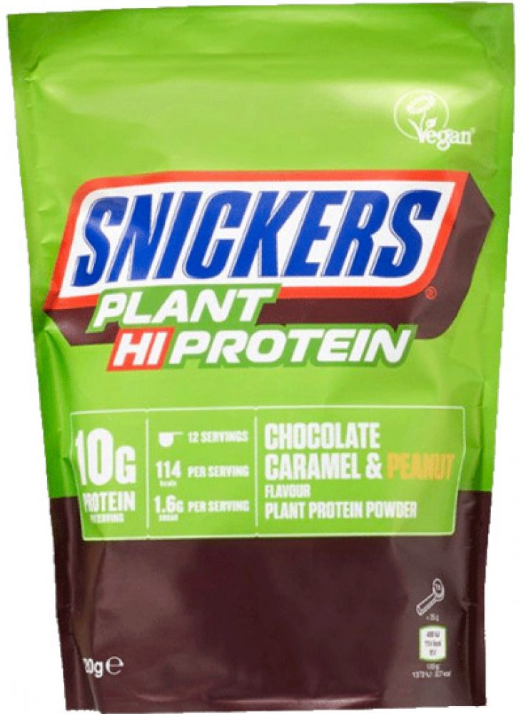 Hi-Protein Plant Based Snickers Protein Powder je proteinový prášek vhodný pro vegany. Tato lahodná pochoutka obsahuje 10 g bílkovin na porci a chutná stejně jako tyčinka Snickers.