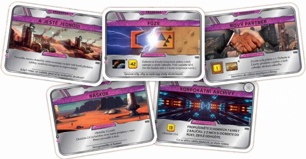 Sada obsahuje 5 nových karet pro deskovou strategickou hru Mars: Teraformace. Nové karty přidávají do hry nové projekty, korporace a události.