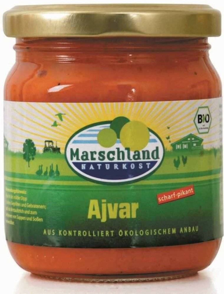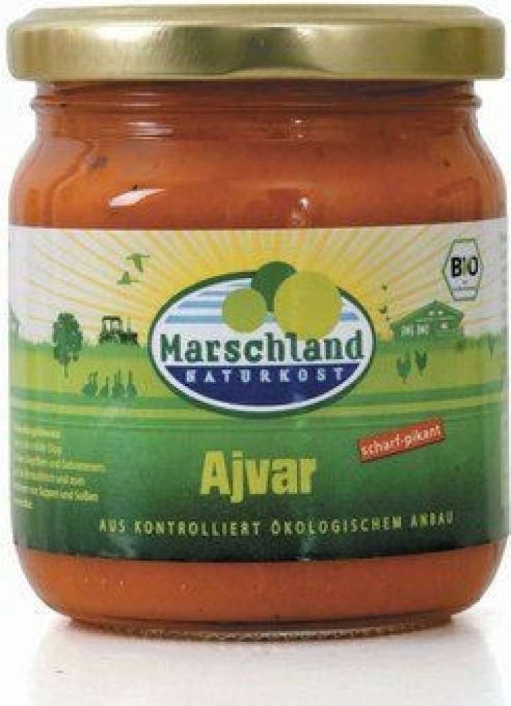 Marschland Ajvar pikantní je lahodná zeleninová pomazánka z pečených paprik a lilku s pikantním nádechem. Výrazná chuť, plná vůně a přírodní složení dělají z tohoto ajvaru ideální doplněk ke grilovanému masu, pečivu, sendvičům i tepelně zpracovaným pokrmům.