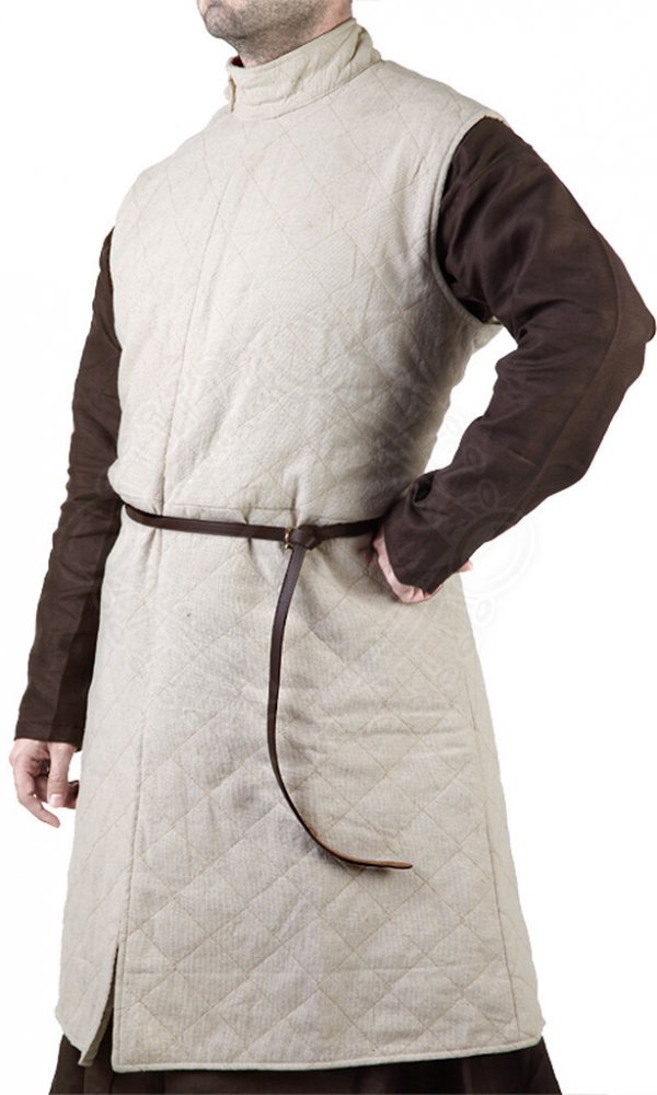 Lehká prošívanice bez rukávů, léta 1200-1350 Vyrobeno z bavlněné tkaniny (100% bavlna) Barva přírodního lnu Tloušťka látky cca.: 4mm Značkový výrobek Marshal Historical Velikost Max. obvod hrudníku Délka L 128cm 101cm XL 136cm 103cm XXL 142cm 105cm Praní lehké prošívanice Prošívku můžete prát v pračce ve studené vodě – za těchto podmínek nedojde k vytažení nebo sražení vlivem praní. Odolné skvrny ...