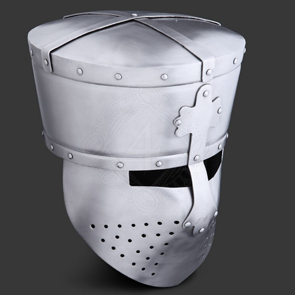 Ranná kbelcová přilba Použitá síla plechu 1,6mm Na obvod hlavy cca 63-64cm Výška zvonu bez obličejového štítu cca 13,5cm Celková výška cca 30,5cm Průměr zvonu cca 21 x 23cm Hmotnost cca 3070 g Helma má uvnitř látkovou výstelku Značkový výrobek firmy Marshal Historical