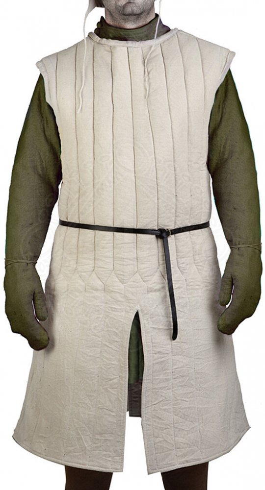 Silná prošívanice bez rukávů, 13.-14. století Vyrobeno z bavlněné tkaniny (100% bavlna). Barva přírodního lnu Tloušťka látky cca.: 1,1cm Značkový výrobek Marshal Historical Jak svrchní textil, tak materiál podšívky i vnitřní vycpávka jsou vyrobeny ze 100% bavlny. Velikost S/M Velikost L/XL Obvod přes hruď 114cm 114cm Obvod v pase 112cm 114cm Celková délka od ramenního švu u krku 112cm 115cm Délka ...