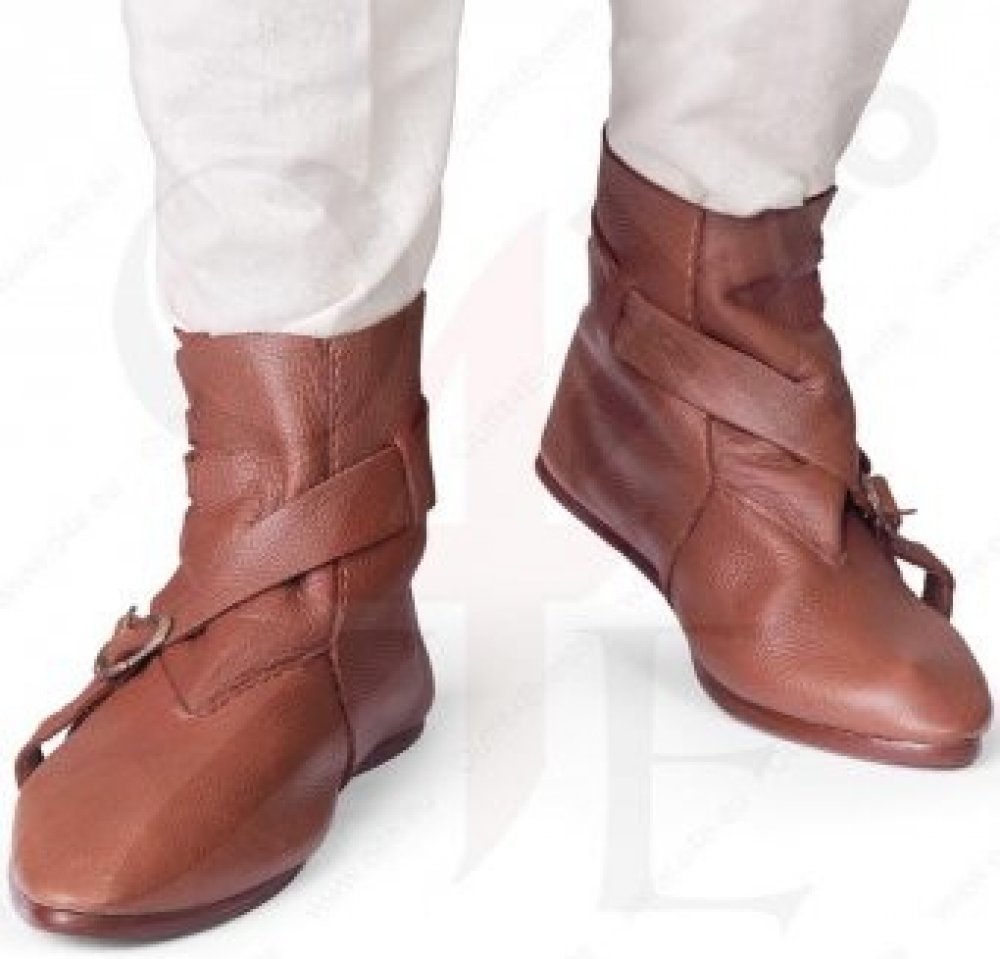 Středověké kotníkové boty s přezkami Seveřan Středověké kotníkové boty s přezkami Seveřan jsou zhotoveny z pravé kvalitní hovězí usně za použití tradičních výrobních postupů a technologií. Boty lze nechat opravit či podrazit u Vašeho místního ševce, a prodloužit tak jejich životnost. Tento model vychází jednoho archeologického nálezu ve městě Dordrecht. Toto město patří k velmi významným místům ar...