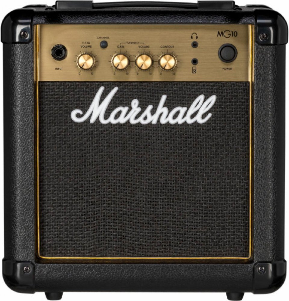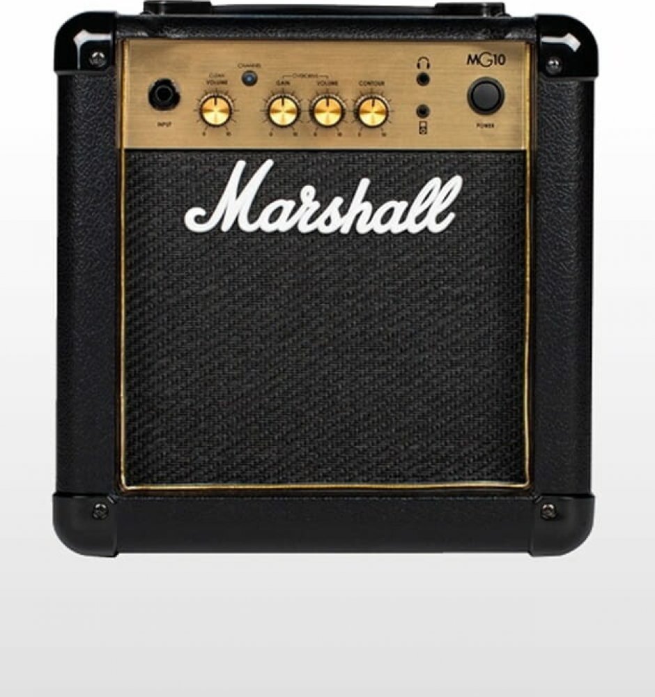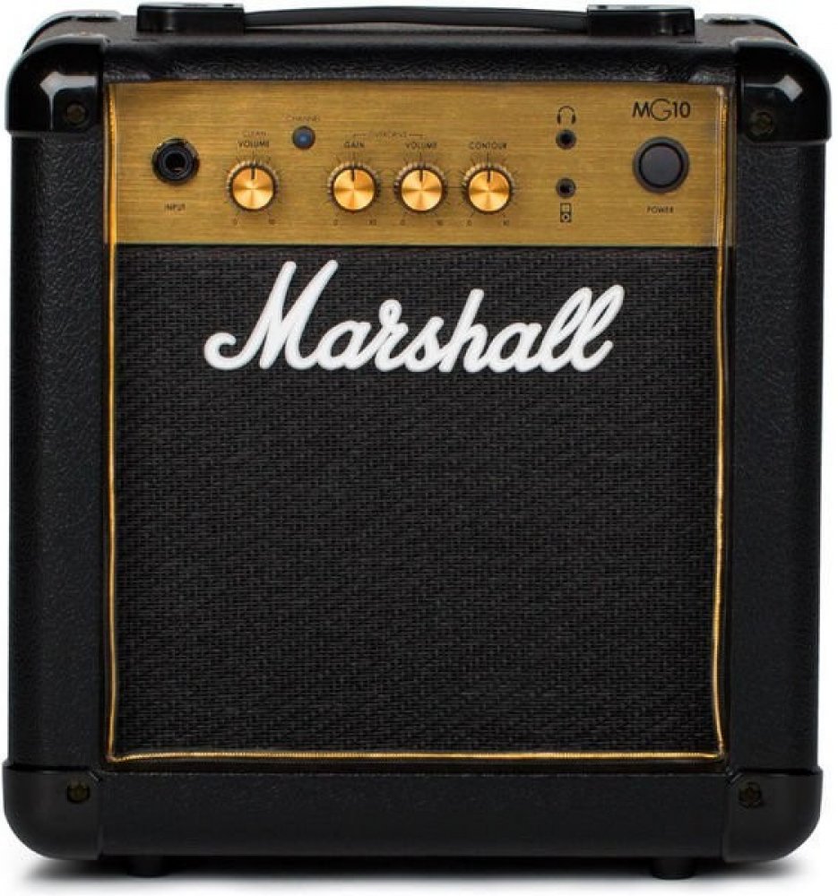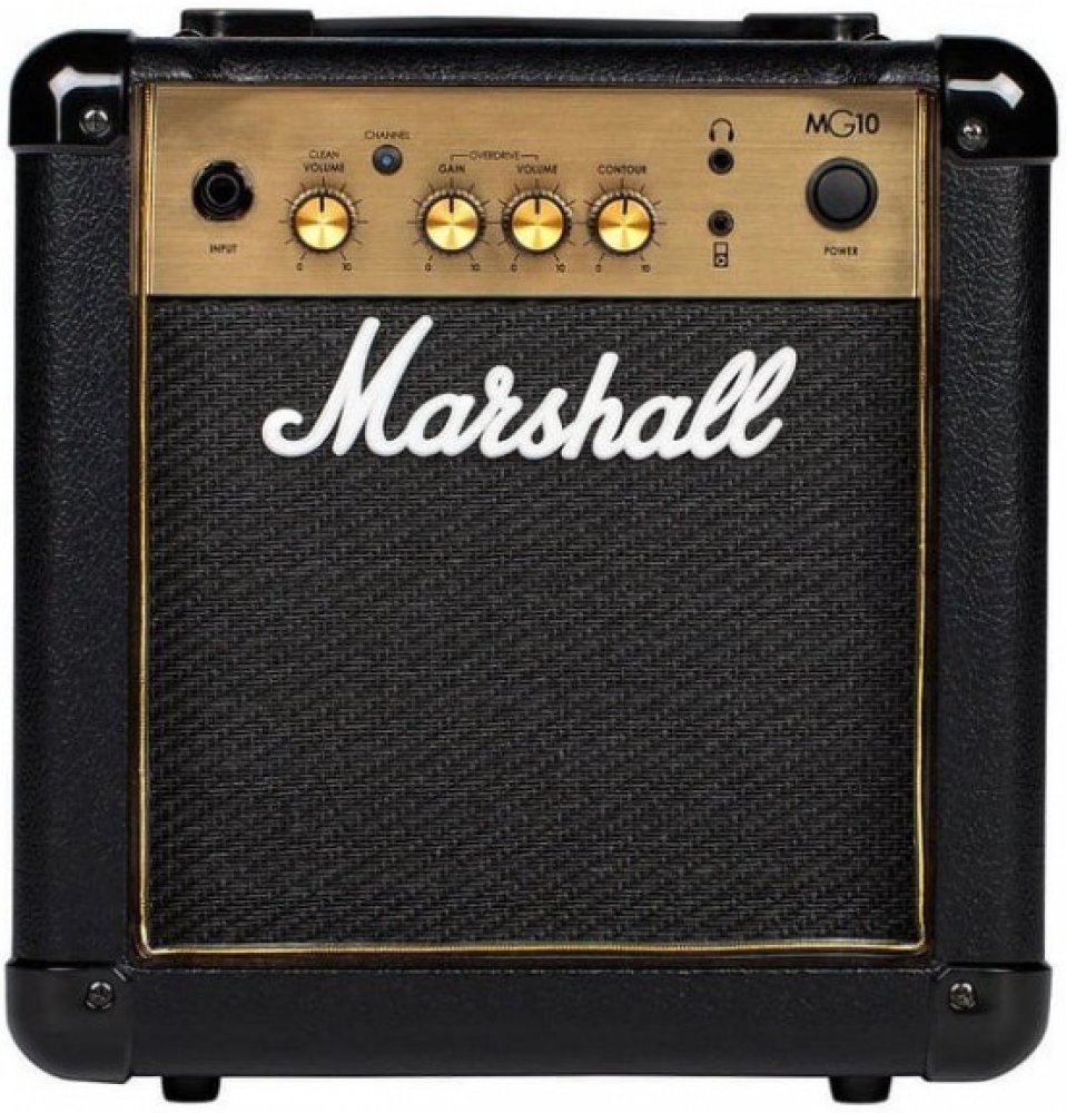 Kompaktní tranzistorové kombo s výkonem 10W vhodné pro domácí cvičení. Kombo ze série MG Gold vyniká jednoduchým ovládáním, které však nabízí dokonale autentický, legendární Marshall zvuk. Kombo je zasazeno v pevenej a odolné laminátové konstrukci a osazeny tranzistorovým zesilovačem s výkonem 10 W. Přední panel nabízí ovládací prvky pro nastavení hlasitosti čistého kanálu, potenciometry pro hlasitost a Gain zkresleného kanálu, přepínač pro spínání kanálů a potenciometr Contour, který slouží pro nastavení odezvy ekvalizéru. kombo je vybaveno i výstupním konektorem pro sluchátka, vstupním konektorem Aux In a jedním 6,5 "reproduktorem s impedancí 8 Ohm. Barevné provedení: Black.