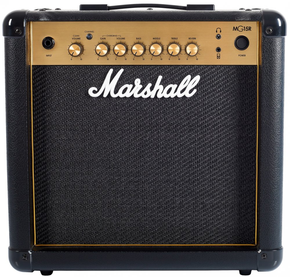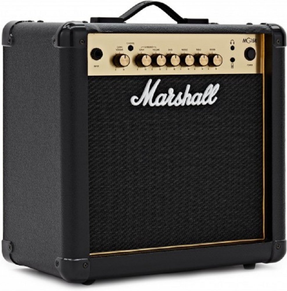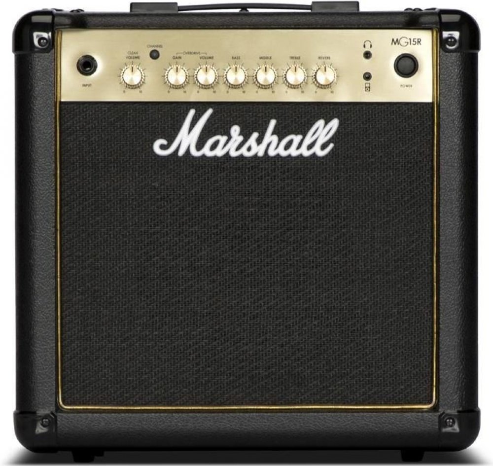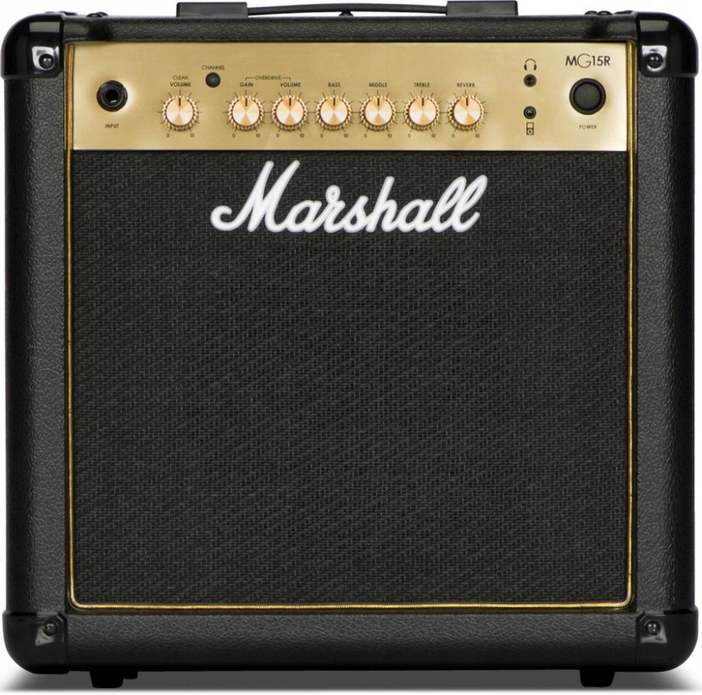 Kytarové tranzistorové kombo Marshall MG15GR je kompaktní kytarové kombo s výkonem 15 wattů, dvěma kanály Clean/Overdrive a přehledným ovládáním v podobě dvou potenciometrů hlasitosti, třípásmového ekvalizéru a ovladače gainu (OD kanál). Oproti základní verzi disponuje vestavěným efektem Reverb. Pomocí Aux in konektoru připojíte ke kombu externí Audio/Mp3 zvukové podklady, do kterých můžete libovolně jammovat - díky výstupu pro sluchátka i v tichém režimu. Představuje tak dobrou volbu domácího aparátu, ale jeho výkon je jistě dostačující k ozvučení komorního koncertu v menším klubu, baru, party s přáteli apod. Tranzistorová kytarová komba Marshall MG Gold nabízí tradiční design a zvuk aparátů této slavné britské značky za dostupnou cenu. Představují dobrou volbu pro široké spektrum kytaristů s různým stylovým směřováním – od úplných začátečníků po koncertními pódii prověřené muzikanty.