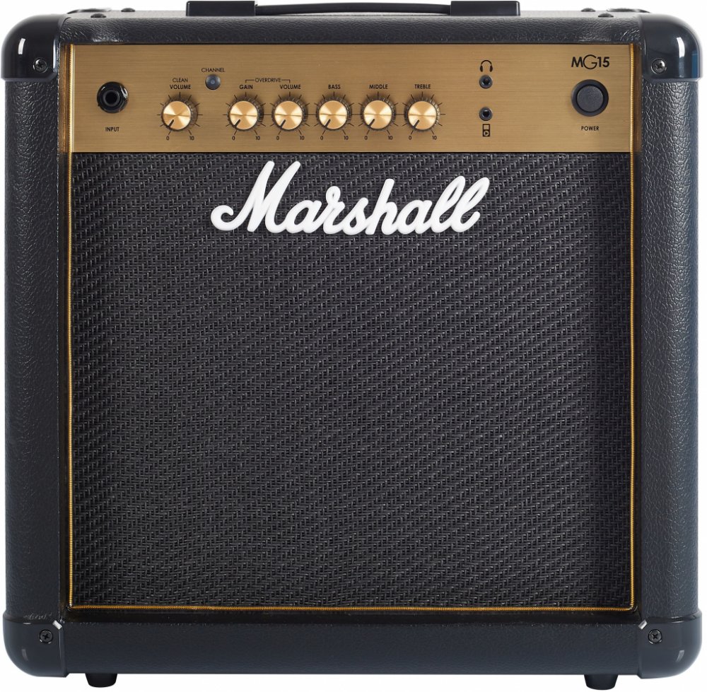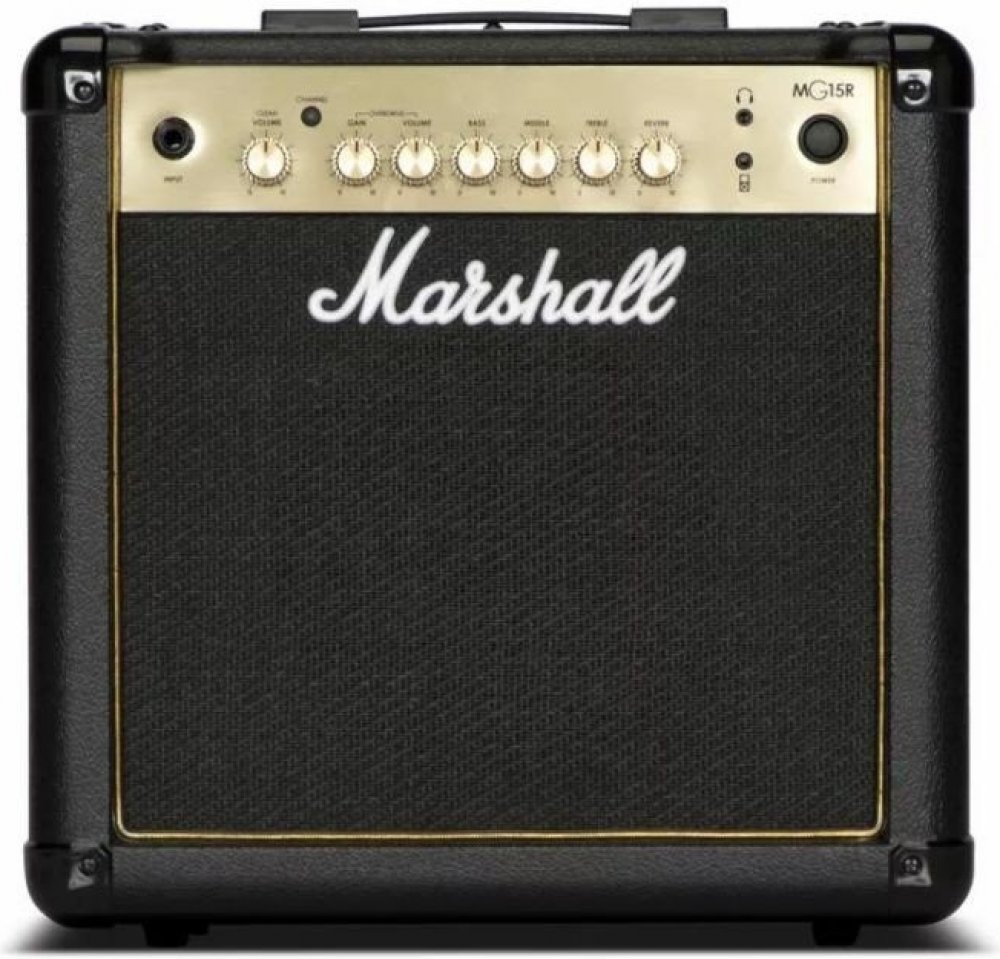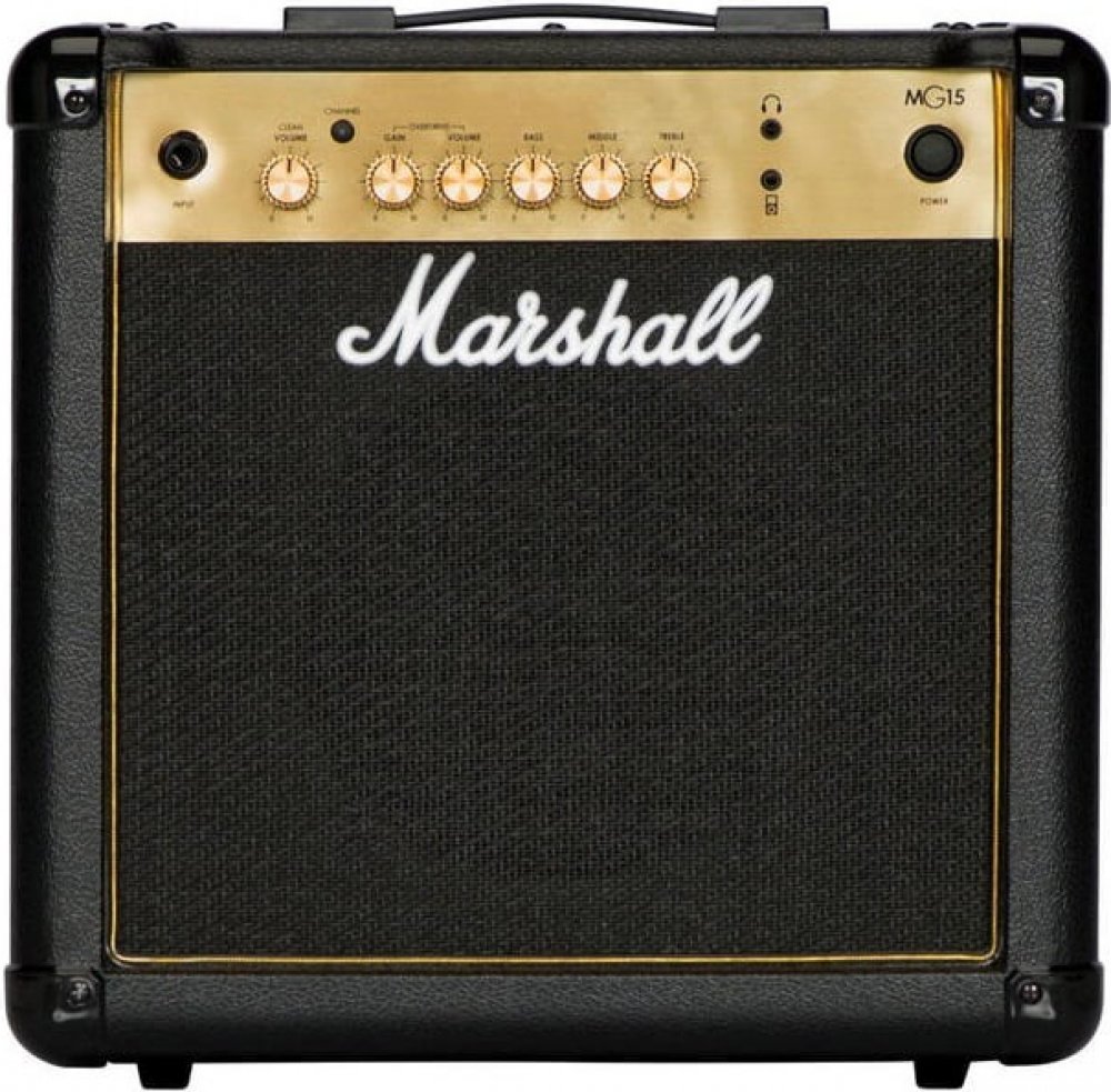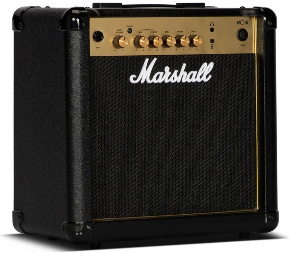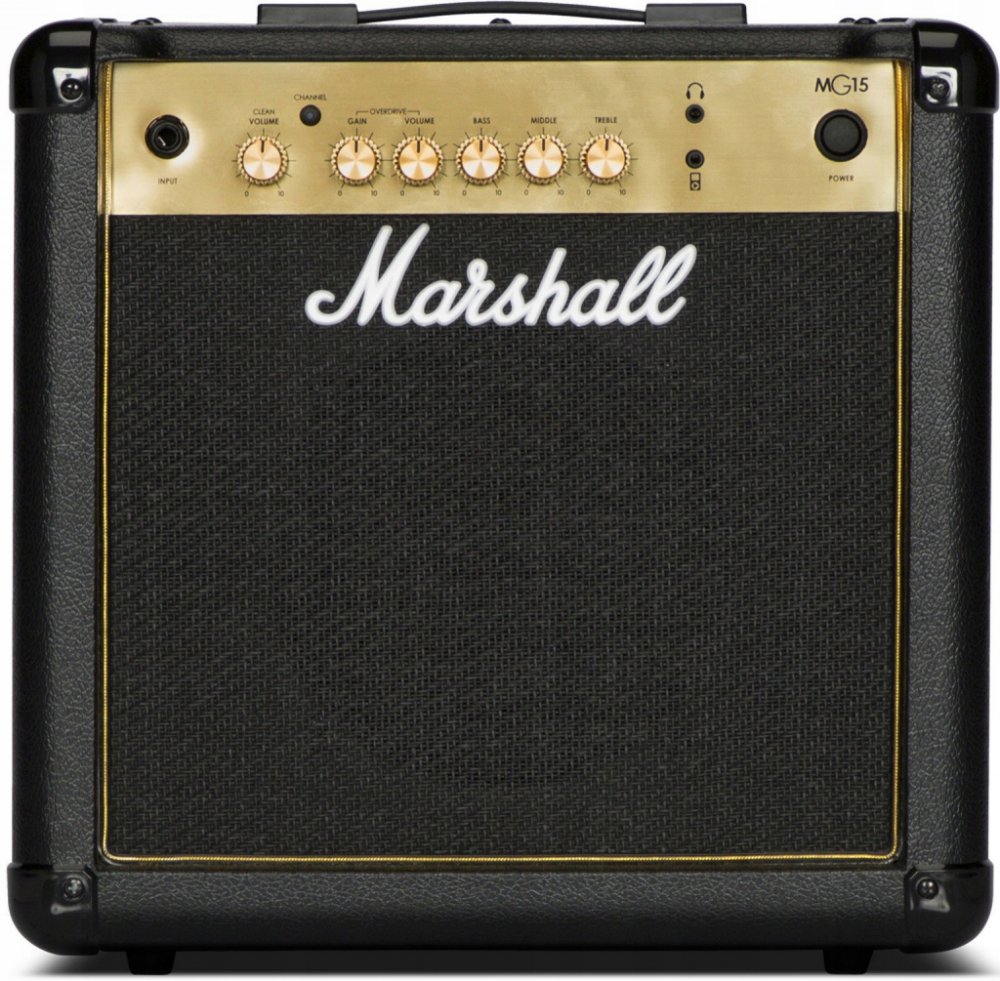 Kytarové tranzistorové kombo Marshall MG15GR je kompaktní kytarové kombo s výkonem 15 wattů, dvěma kanály Clean/Overdrive a přehledným ovládáním v podobě dvou potenciometrů hlasitosti, třípásmového ekvalizéru a ovladače gainu (OD kanál). Oproti základní verzi disponuje vestavěným efektem Reverb. Pomocí Aux in konektoru připojíte ke kombu externí Audio/Mp3 zvukové podklady, do kterých můžete libovolně jammovat - díky výstupu pro sluchátka i v tichém režimu. Představuje tak dobrou volbu domácího aparátu, ale jeho výkon je jistě dostačující k ozvučení komorního koncertu v menším klubu, baru, party s přáteli apod. Tranzistorová kytarová komba Marshall MG Gold nabízí tradiční design a zvuk aparátů této slavné britské značky za dostupnou cenu. Představují dobrou volbu pro široké spektrum kytaristů s různým stylovým směřováním – od úplných začátečníků po koncertními pódii prověřené muzikanty.