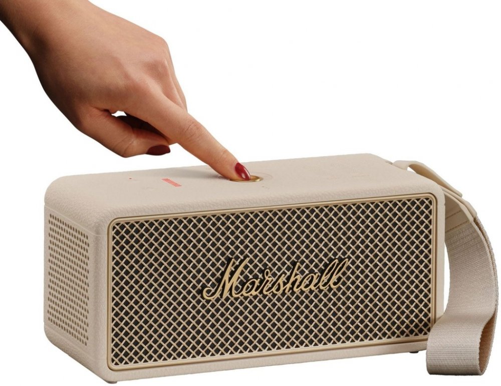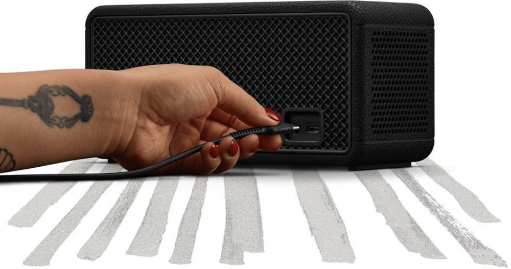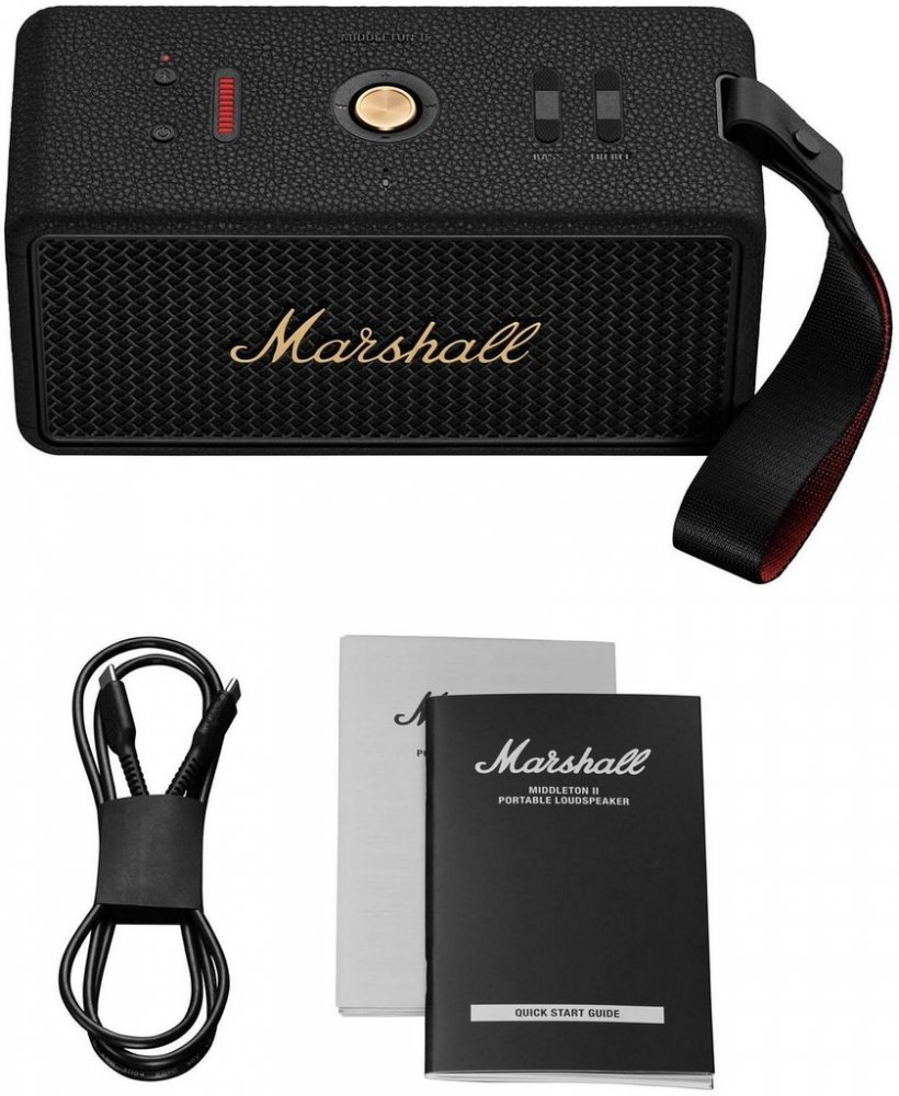 Bezdrátový reproduktor Marshall Middleton II Middleton II ti nabídne přes 30 hodin přenosného přehrávání, takže můžeš hudbu poslouchat od rána do dalšího dne bez přerušení. Pokud přece jen dojde energie, stačí 20 minut nabíjení a získáš dostatek šťávy na další poslech. Tento reproduktor je připraven na dlouhé hudební sety doma, venku i na cestách. Díky technologii 360° True Stereophonic tě hudba zasáhne ze všech úhlů a vytvoří skutečně pohlcující prostorový zážitek. Middleton II zní plně a vyváženě bez ohledu na to, kde stojíš. Každý tón má své místo a sílu, takže si vychutnáš detailní zvuk při jakékoli hlasitosti. Odolná konstrukce s certifikací IP67 chrání reproduktor před prachem, pískem i vodou. Middleton II zvládne ponoření do hloubky 1 metru po dobu až 30 minut, takže se nezalekne deště ani nečekaných podmínek. Pevné tělo a ikonický design Marshall se postarají o styl i spolehlivost v každé situaci. Ovládání je snadné díky více směrnému ovládacímu knoflíku, který umožní přeskakovat skladby, měnit hlasitost nebo přijímat hovory. Middleton II poslouží i jako powerbanka, takže dobije tvůj telefon, kdykoli bude potřeba. Vestavěný mikrofon ti umožní vyřídit hovory handsfree, ať už jsi kdekoli. Hlavní vlastnosti 30h výdrž 360° stereo Voděodolné tělo Funkce powerbanky