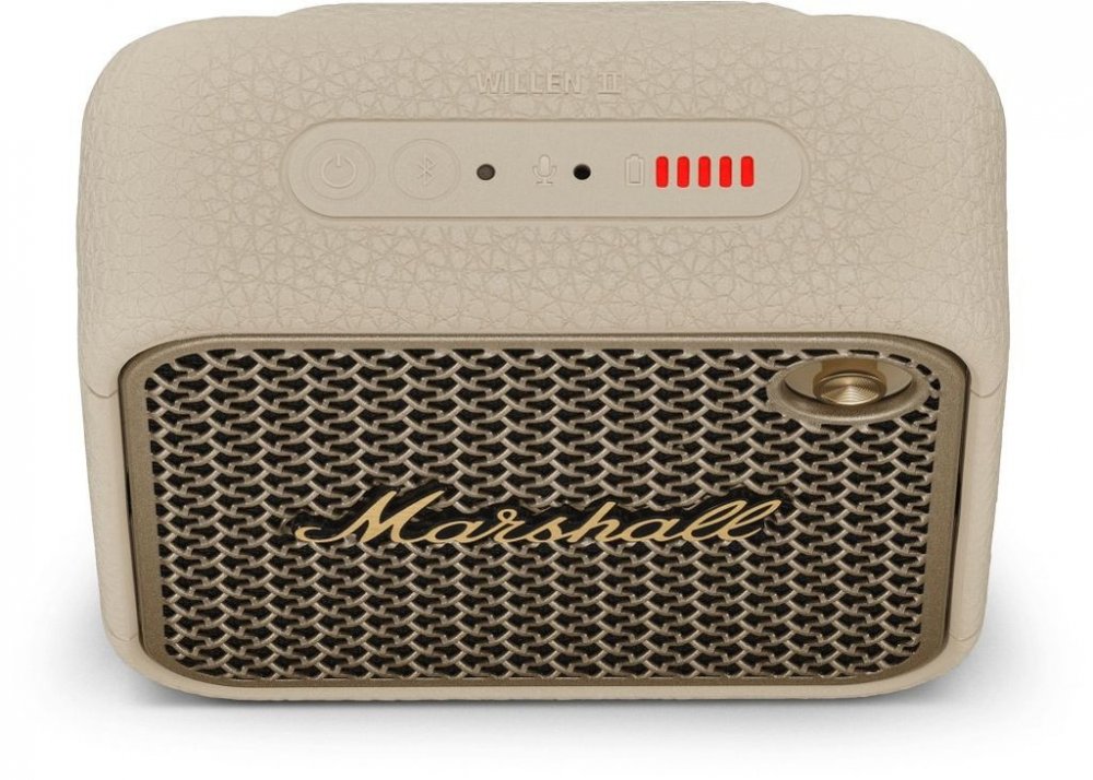 Přenosný Bluetooth reproduktor Marshall Willen II oplývá neobyčejně kompaktním tělem, přesto však poskytuje naprosto pohlcující a fantastický zvuk. Vylepšený 2palcový plnorozsahový měnič s výkonem 10 W, dva pasivní zářiče, 38W zesilovač třídy D a zvětšený rám produkují naprosto monumentální stereo audio s dechberoucími basami a prokreslenými detaily. Willen II hraje na jedno plné nabití více než 17 hodin, můžete ale využít i rychlé 20minutové dobití až pro 5,5hodinové přehrávání.