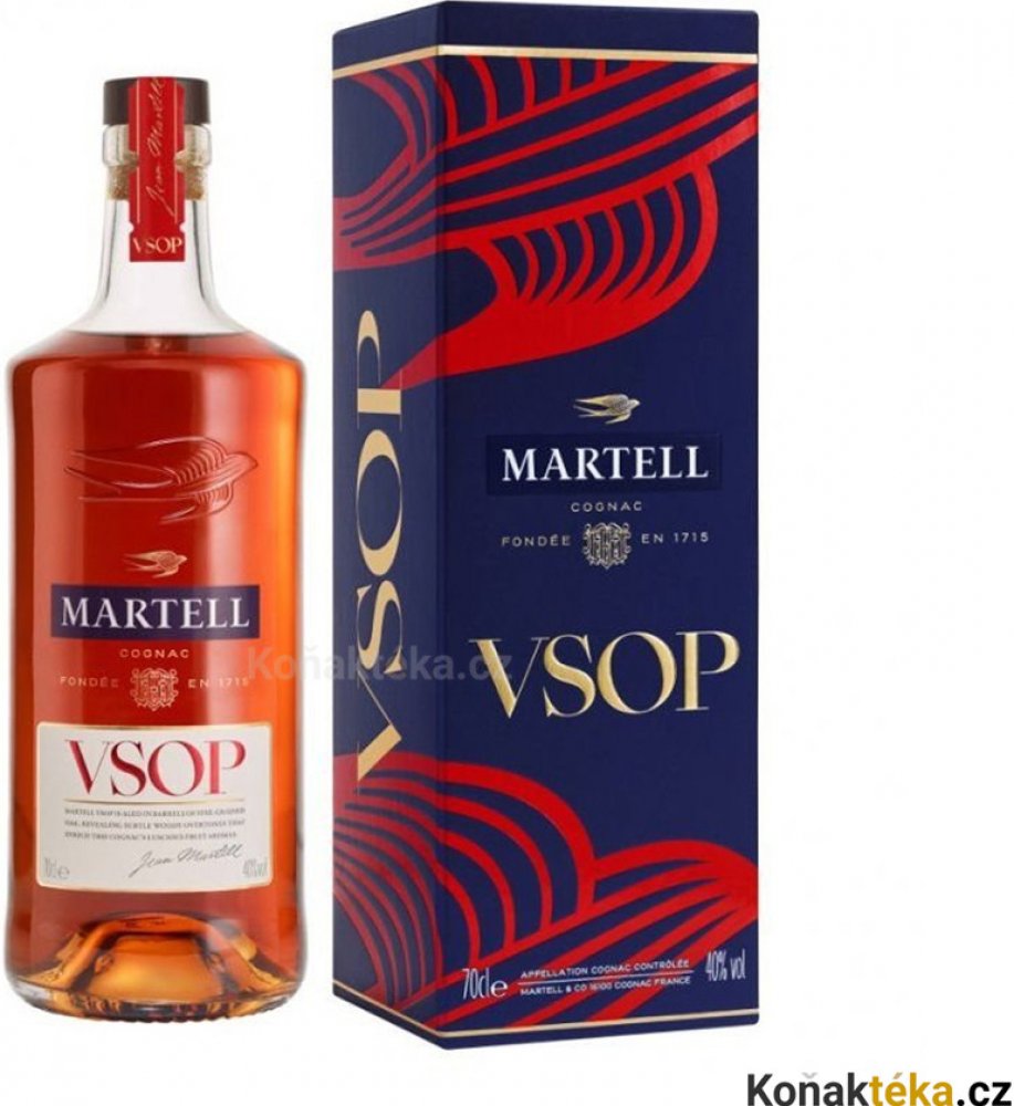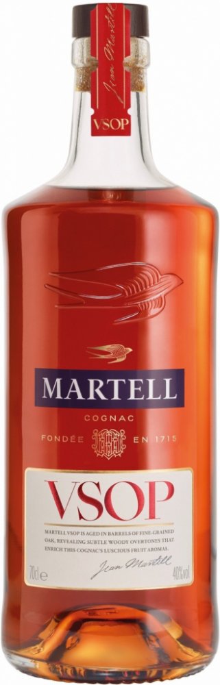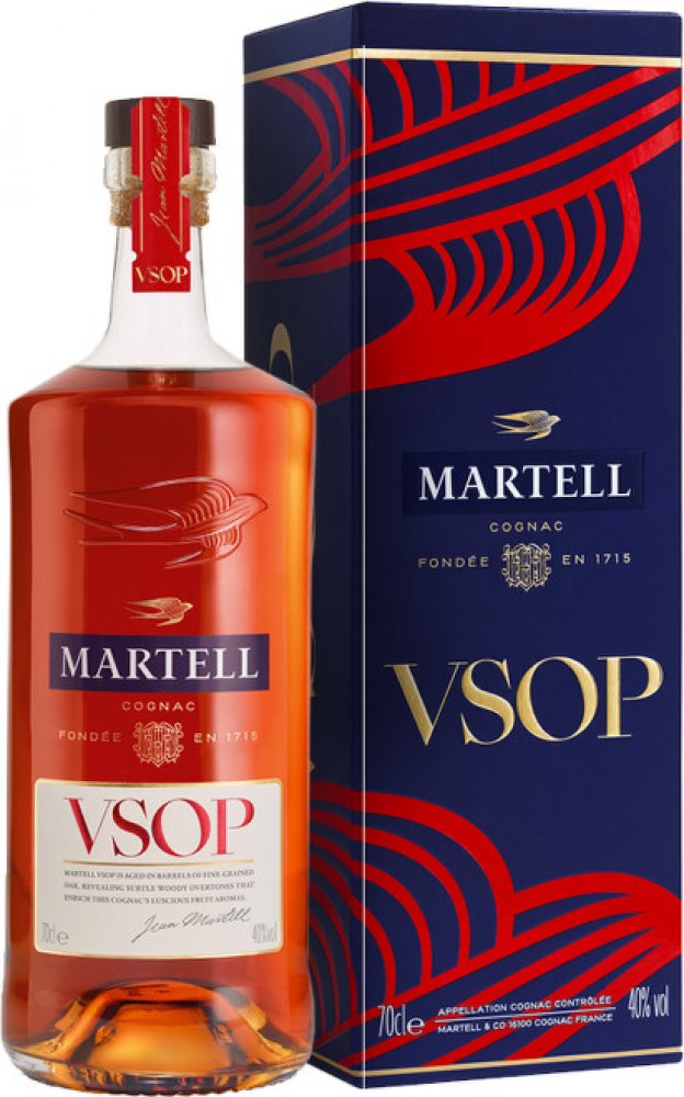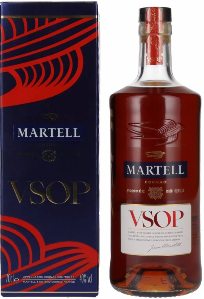 Martell VSOP je kvalitní koňak značky Martell, který vzniká kombinací destilátů z odrůd hroznů Ugni Blanc, Colombard a Folle Blanche. Po minimálně 4letém zrání v sudech z francouzského dubu získává koňak svoji charakteristickou jemnost a hloubku. Vychutnejte si sladké a ovocné aroma s tóny hrušek, meruněk a vanilky, doplněné plnou a komplexní chutí s jemnými tóny koření a dřeva. Martell VSOP je ideální volbou pro ty, kteří hledají vynikající chuť koňaku za rozumnou cenu. Patří mezi nejpopulárnější koňaky na světě a je vyhledávaným nápojem mezi milovníky koňaku i sběrateli.
