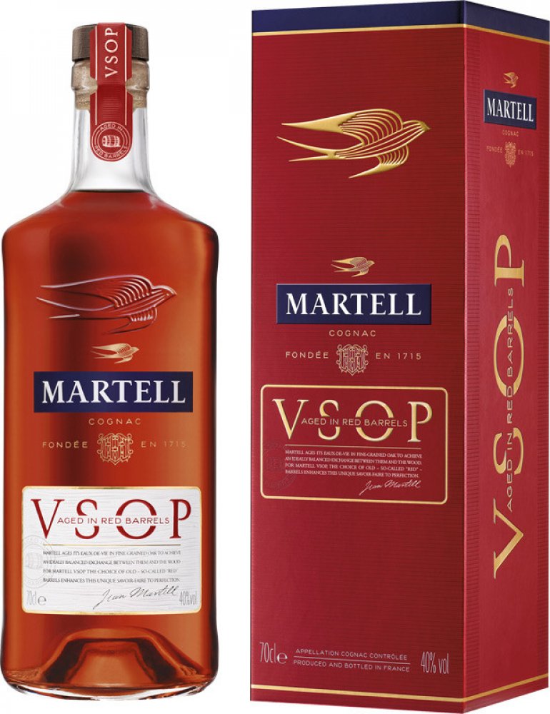 Hebký, sametově jemný VSOP Po dlouhém odpočinku v sudech z francouzského dubu má zlatavě jantarovou barvu a příjemně hořkokyselou vůni limetek, lékořice, kdoulí, rozinek a švestek, kterým dělají společnost noty dubového dřeva a typická oříškovost koňaků Martell. V ústech je příjemně ovocný, kulatý a plný, s dokonale dlouhým závěrem. Vychutnejte si ho samotný, ale i jako součást míchaných drinků. Pravý destilát. Vůně limetky, lékořice, kdoule, rozinky a švestky. Chuť ovocný, kulatý a plný, s dokonale dlouhým záv. Doporučujeme k samotný, ale i jako součást míchaných drinků..