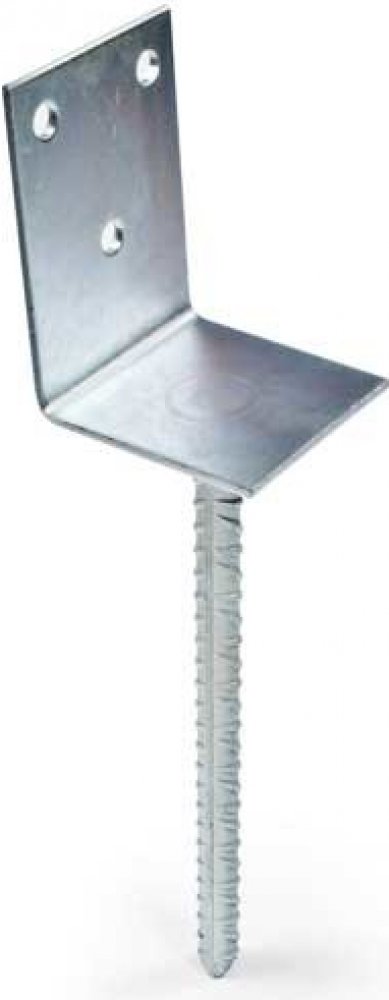 Kotevní patka L 100x80 vyrobena z plechu o síle 4 mm a trnu o ø20 mm a délce 250 mm. Galvanicky zinkovaná