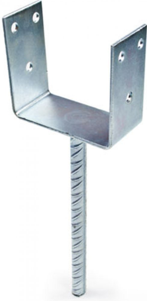 Kotevní patka U 100x60 vyrobena z plechu o síle 4 mm a trnu o ø20 mm a délce 250 mm. Galvanicky zinkovaná