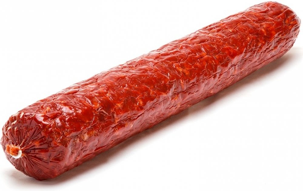 Složení: vepřové maso a tuk (92%), sůl, paprika, dextróza, sacharóza, dextriny, rostlinné bílkoviny, emulgátor (E450iii), česnek, antioxidant (E392,E301, E331iii), konzervační látka (E252, E250)