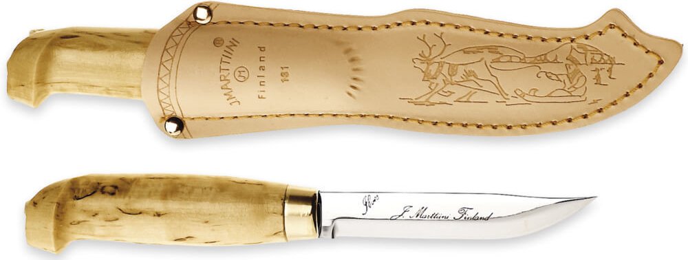Marttiini Lynx 131 je lovecký nůž s pevnou čepelí a zahnutým ostřím ve světlém koženém pouzdře. Střenka nože je vyrobena z finské břízy a je lakovaná. Čepel je z nerezové oceli 440.