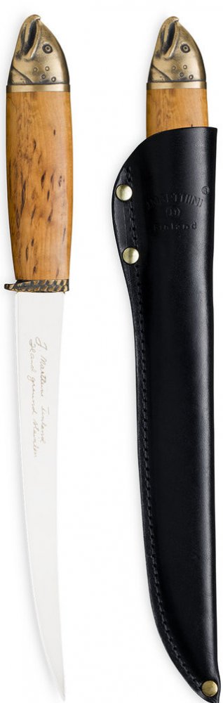 Marttiini Salmon Filleting knife je opravdu nádherný filetovací nůž. Spojuje v sobě praktické využití, kvalitní materiály, prvotřídní řemeslné zpracování a umělecké cítění. Tento designový nůž je působivým sběratelským kouskem i spolehlivým nástrojem s výjimečně ostrou a flexibilní čepelí, se kterou vám výroba rybích filé zabere jen chvíli.