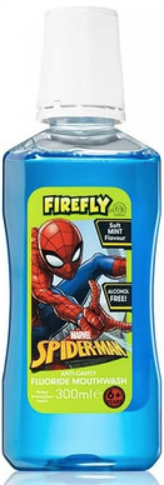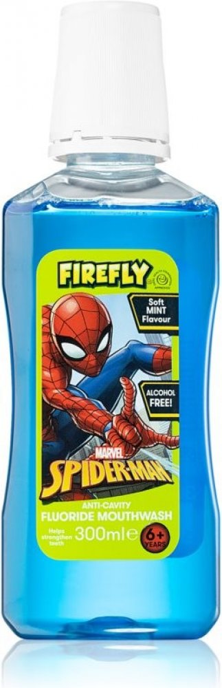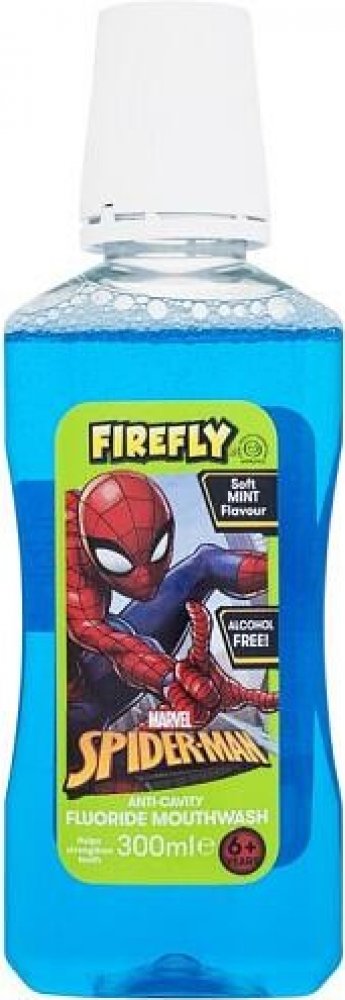 SPIDERMAN FIREFLY MARVEL Ústní voda pro děti, bez alkoholu a cukru. Ústní voda svým speciálním složením pomáhá: Chránit proti zubnímu kazu - Chránit proti plaku - Chránit proti zubnímu kameni - Posílit zubní sklovinu - Osvěžit dech
