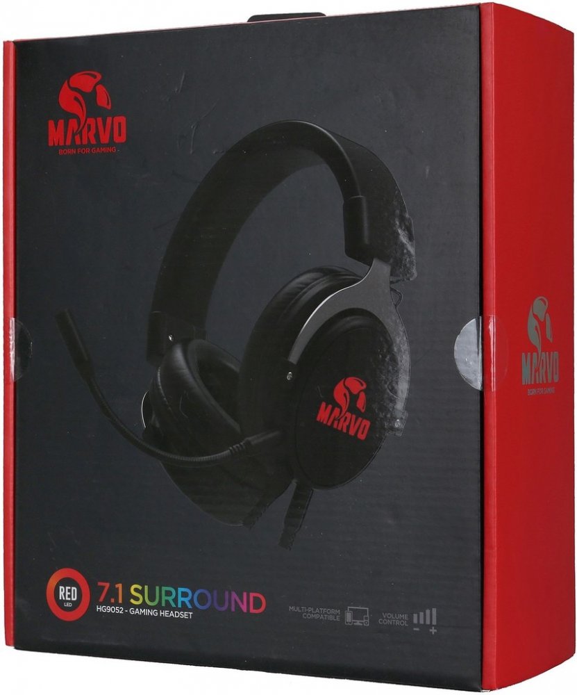 kabelová 32 Ohm herní 20000 Hz 20 Hz Marvo 110 dB/mW přes hlavu (náhlavní) 3,5 mm Jack + USB uzavřená černá 180 cm 50 mm