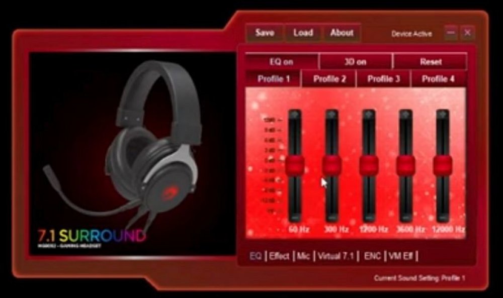 Pro pokročilá nastavení doporučujeme nainstalovat software, díky kterému si můžete přesně nastavit ekvalizér, zvukové efekty, mikrofon nebo 7.1 viruální zvuk. K dispozici jsou 4 uživatelské profily pro různá nastavení. Díky tomu si můžete sluchátka přesně nastavit pro různé typy her.