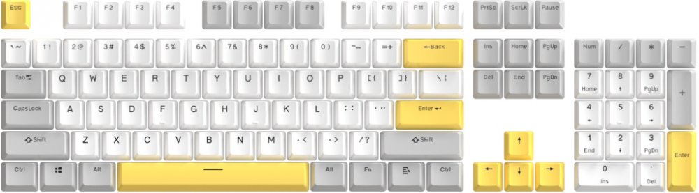 .popisTabulka td { border: 1px solid #252424; min-width: 5rem;padding: 0.15rem 0.35rem; } .popisTabulka tr:nth-of-type(2n) { background-color: #e3e9eb; } Materiál: PBT Počet kláves: 104 + 20 doplňkovýchBarva: šedá - bílá - žlutáLayout: US Switch kompatibilita:standard MX cross axisKompatibilita klávesnic: 60 / 65 / 75 / 100 % Podsvícené: NeOS layout: Windows