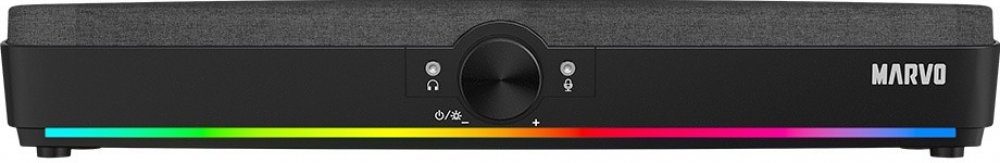 Soundbar Marvo nezná hranice, a tak je skvělým společníkem i pro poslech hudby a nebo sledování filmů. Pokud máte dost hraní a potřebujete vypnout, stačí se pouze usadit a užívat si relax. Už jste si dost odpočinuli? A co takhle filmy? I 2.0 soundbar dokáže příjemně překvapit a nabízí kvalitnější zvuk než kdejaké televize. Navíc večerní atmosféru skvěle doplní RAINBOW podsvícení, které se nachází na spodní liště soundbaru - nabízí až 5 různých barev + 1 RGB efekt. Kabel dlouhý 1.5 metru nabízí dostatek prostoru a můžete si svůj soundbar položit kde chcete. Navíc vedle kolečka pro hlasitost naleznete na obou stranách vstupy pro sluchátka nebo mikrofon.