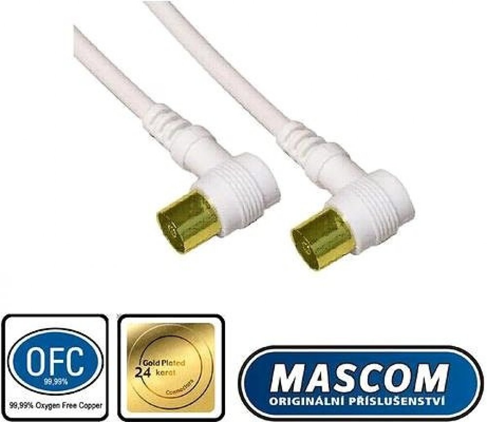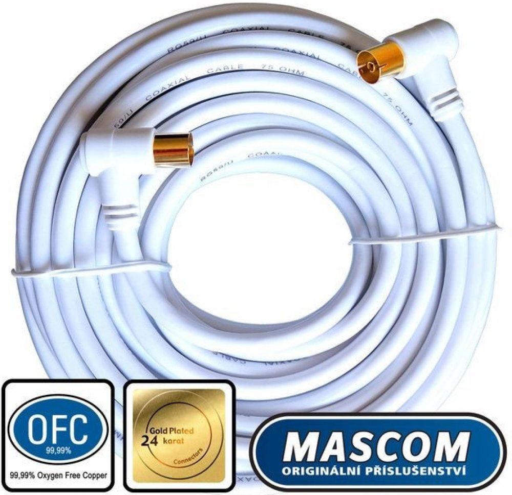 Klíčové přednosti produktu Mascom anténní kabel 7274-100, úhlové IEC konektory 10m Koaxiální kabel Mascom slouží k propojení antény s televizorem pro příjem signálu Anténní kabel poskytuje vynikající kvalitu obrazového přenosu 1× anténní konektor (IEC) male konektor 1× anténní konektor (IEC) female konektor Přenos signálu beze ztrát zajišťují pozlacené konektory Šumu zabrání kvalitní stínění koaxiálního kabelu Barva kabelu Mascom je bílá Zahnutý konektor je ideální při nedostatku prostoru u zařízení S kabelem Mascom o délce 10 m dosáhnete i na vzdálenější zařízení