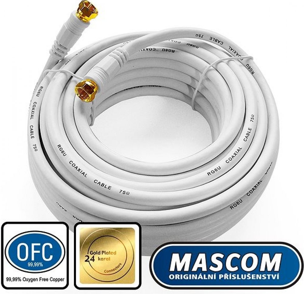 Anténní kabel Mascom 7676-100W s pozlacenými F konektory o délce 10 m. Koaxiální kabel je určen pro ploché TV, HDTV a kvalitní tunery. Kabel disponuje dvojitým stíněním. Maximální odolnost kabelu poté zajistí jeho vodotěsnost. Anténní kabel Mascom 7676-100W je bílé barvy. Klíčové vlastnosti anténního kabelu Mascom 7676-100WKvalitní koaxiální kabel o délce 10 mPozlacené F konektoryKabel disponuje dvojitým stíněnímVodotěsná konstrukce kabelů