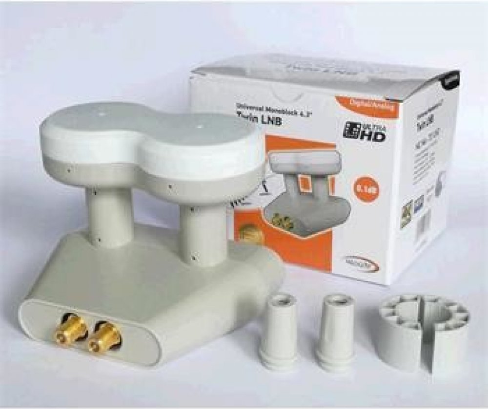 Univerzální monoblok twin 4,3°, který je přesně optimalizován pro příjem družice Astra3 (23,5°) a Astra1 (19,2°) při příjmu z paraboly s rozměrem 80cm.