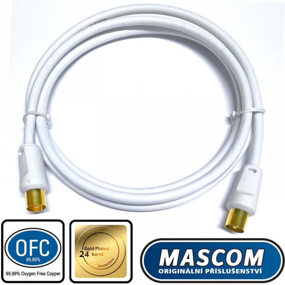 Anténní kabel Mascom 7173-015 s pozlacenými IEC konektory o délce 1,5 m. Koaxiální kabel je určen pro DVB-T2. Kabel disponuje dvojitým stíněním. Maximální odolnost kabelu poté zajistí jeho vodotěsnost. Anténní kabel Mascom 7173-015 je bílé barvy. Klíčové vlastnosti anténního kabelu Mascom 7173-015Kvalitní koaxiální kabel Mascom o délce 1,5 mPozlacené IEC konektoryKabel Mascom disponuje dvojitým stíněnímVodotěsná konstrukce kabelů